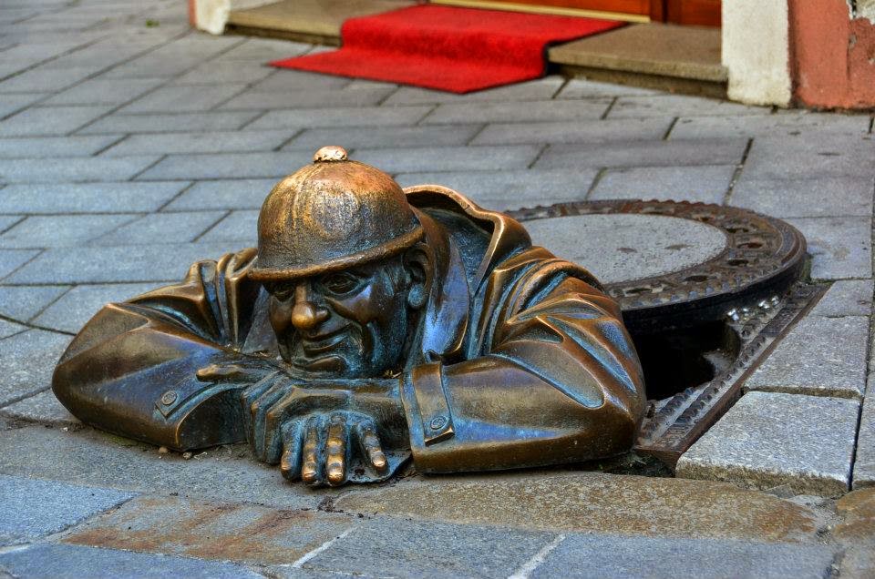很喜歡Bratislava的銅像,常常在意想不到的地方看到有趣的銅像,像這位銅像老兄,似乎是住在地下道。