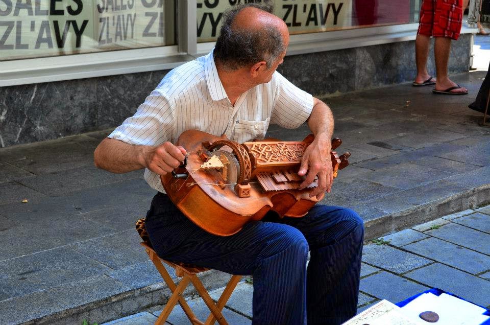 街頭藝人,很有特色的樂器,發出來的聲音很低沈。