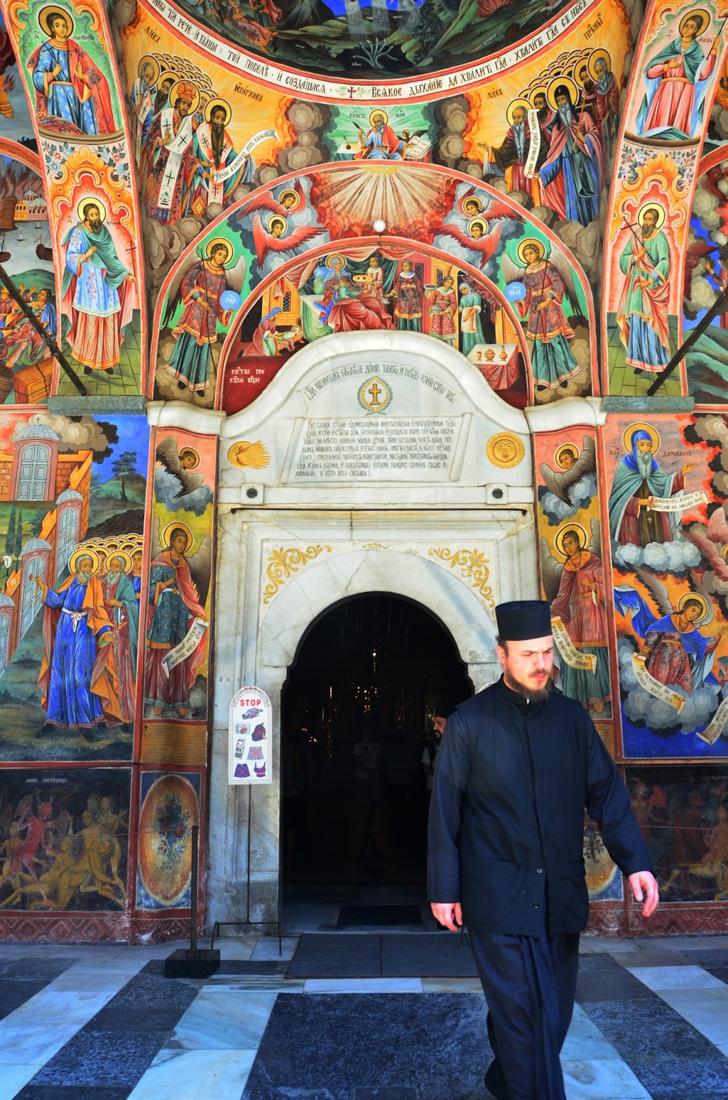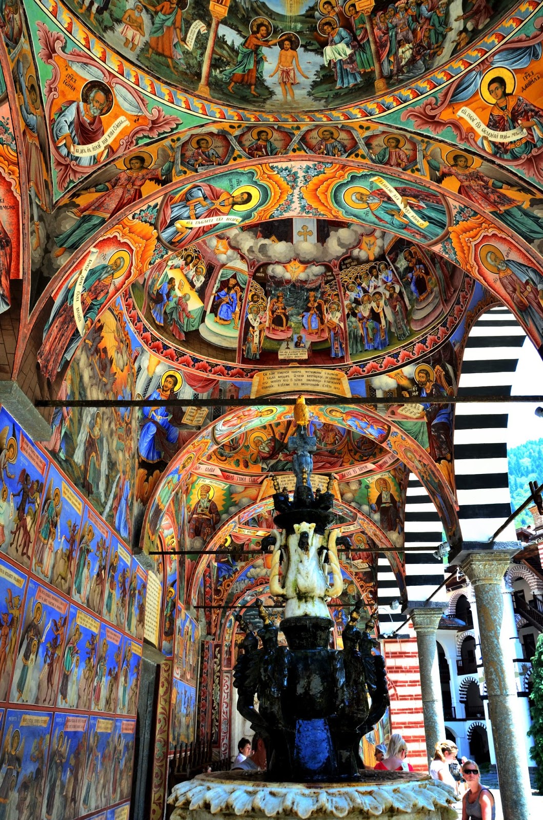 老實說,去了很多國家的教堂、修道院,里拉修道院雖稱不上大,但卻給人非常莊嚴的感覺。進去裡面不可以穿短褲、無袖上衣,不可以拍照攝影。進去之後真得讓人嘆為觀止,滿滿的溼壁畫佈滿各處,很多人在裡面點蠟燭祈福,極為真誠。