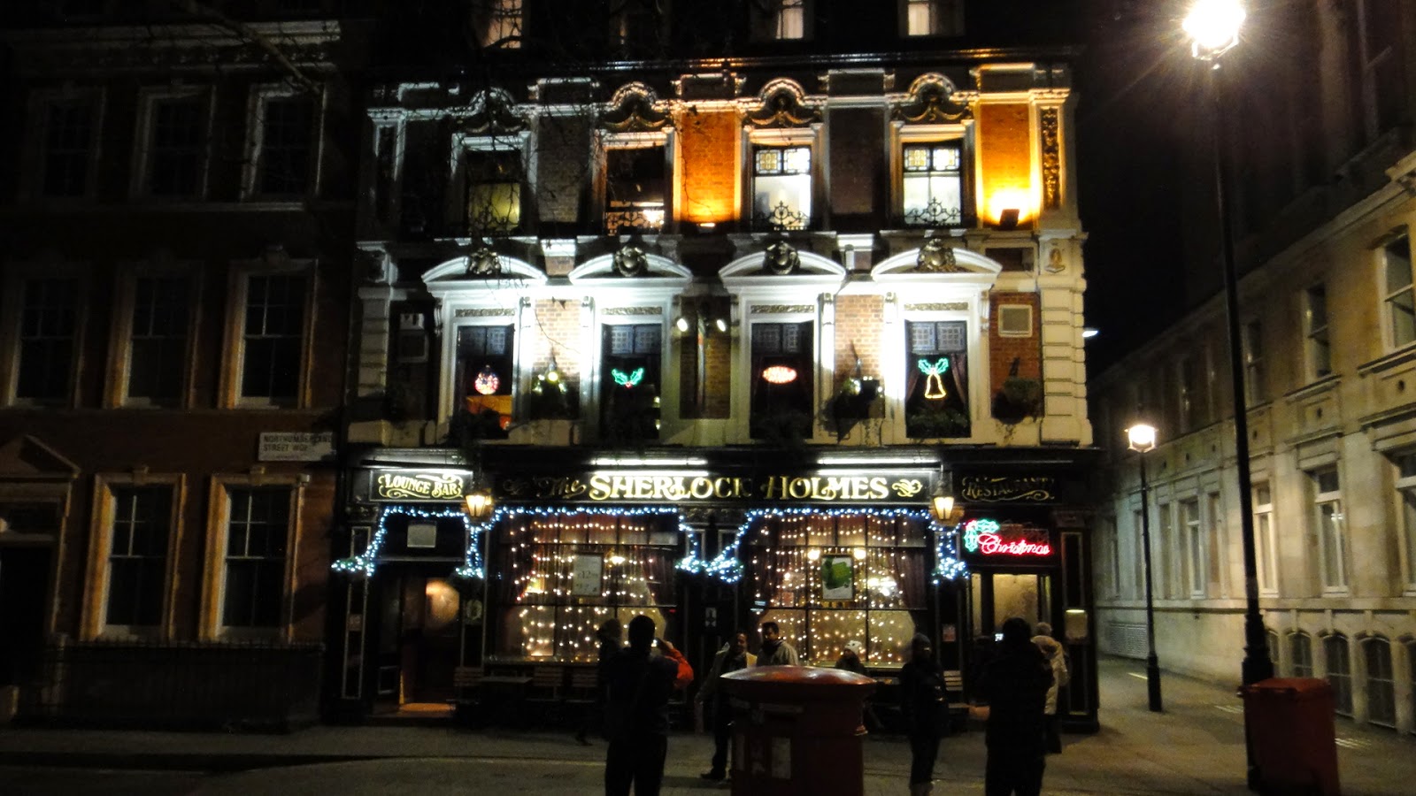 晚上接著要去搭倫敦眼了,路過了這間福爾摩斯餐廳Sherlock Holmes,很多人在外面拍照呢。