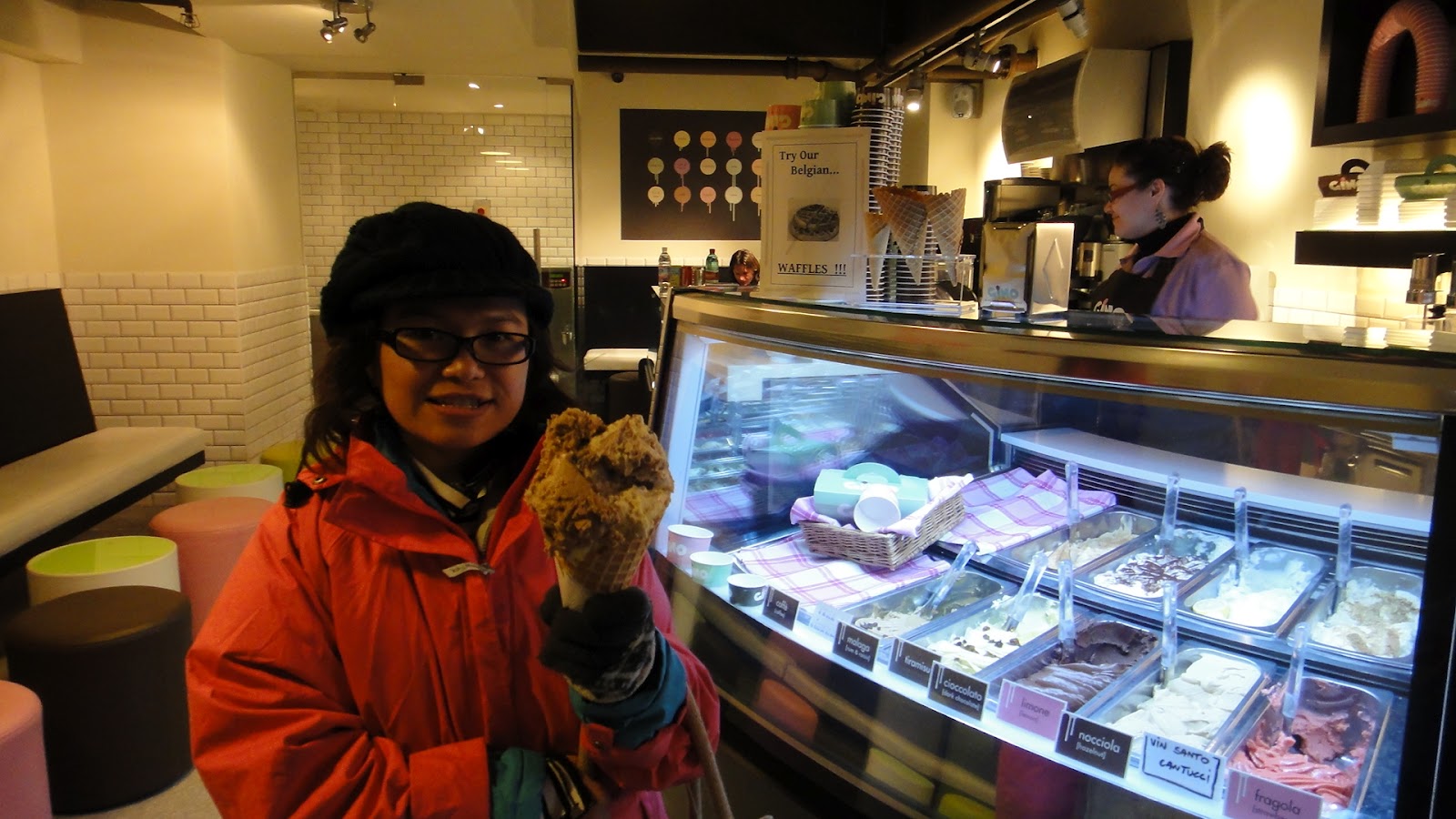 快要接近看戲的時間了,我跟書寧先跑去吃了這個當地有名的冰淇淋,很大個,但很貴,所以我們四個人share一個,有沒有省?!