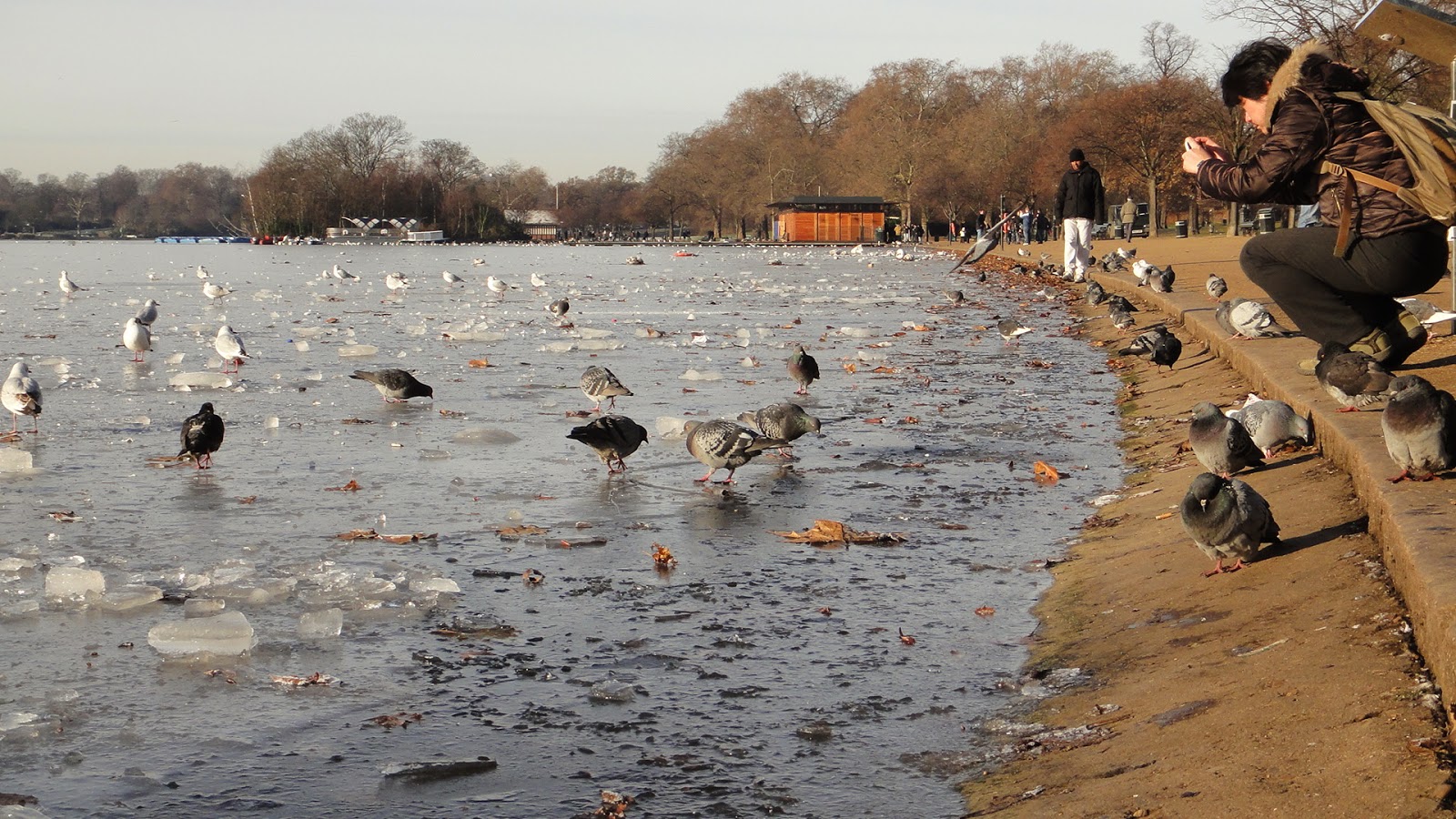 Hyde Park裡面的湖,不過湖面都結冰了,還有很多鳥鴨鵝在冰冷的河面上游泳....真厲害。