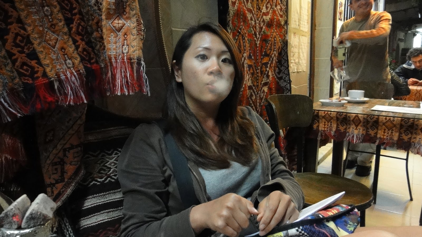 我正在嘗試抽水煙,不過放心,沒有尼古丁,只有濃濃的草莓味,呵呵,我不抽菸滴。