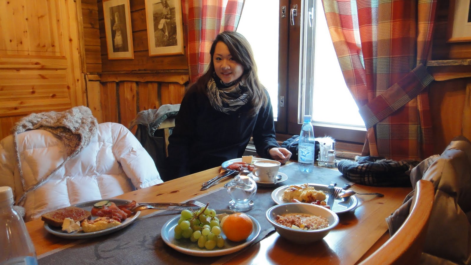 在滿是雪景的窗戶旁醒來,是多麼美麗的景象,急速整裝後就到餐廳去享用我們的早餐,及思考我們今天該怎麼走我們的行程。
