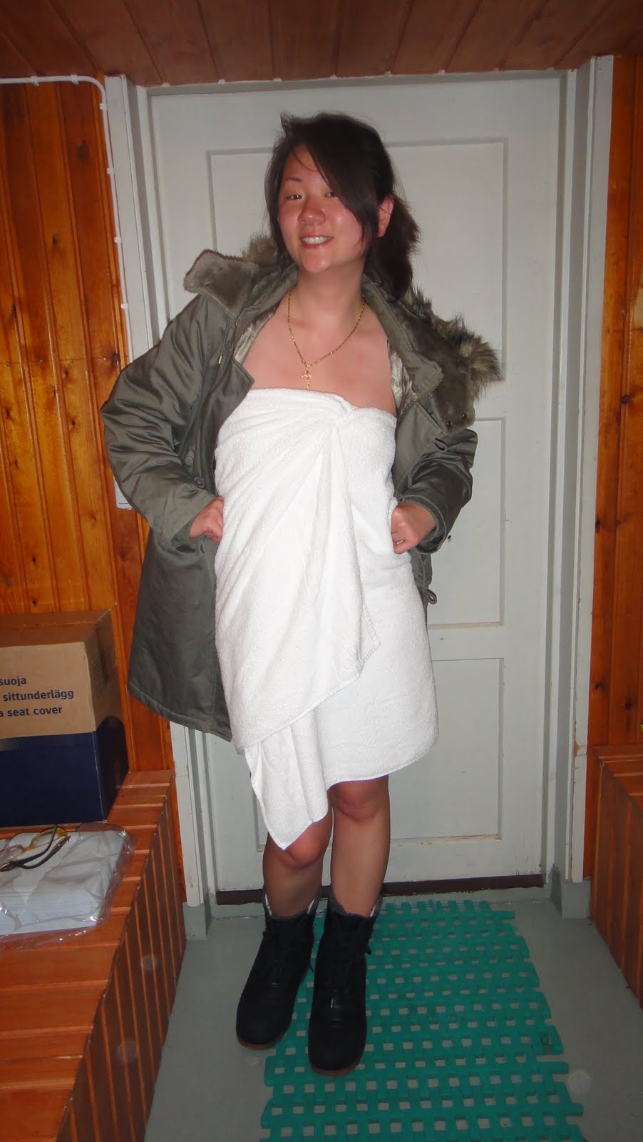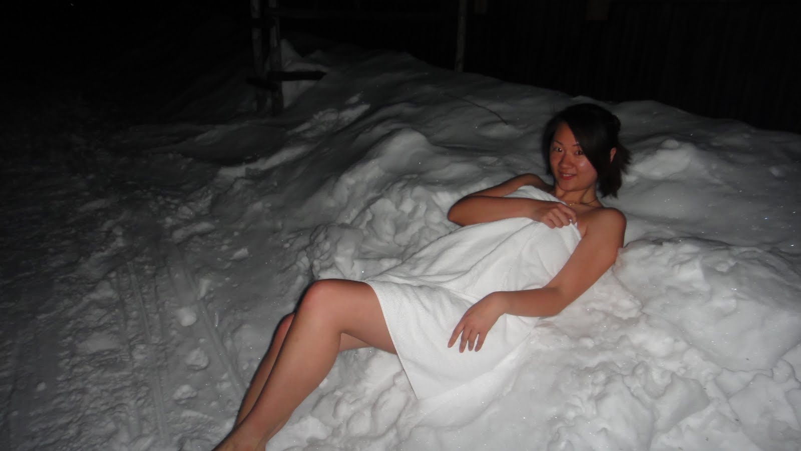 這個瘋女人在幹嘛? 來芬蘭哪有不做這瘋狂的事呢? 先在Sauna待到全身冒汗,然後一下子衝到雪裡躺著。全身超麻癢的!
