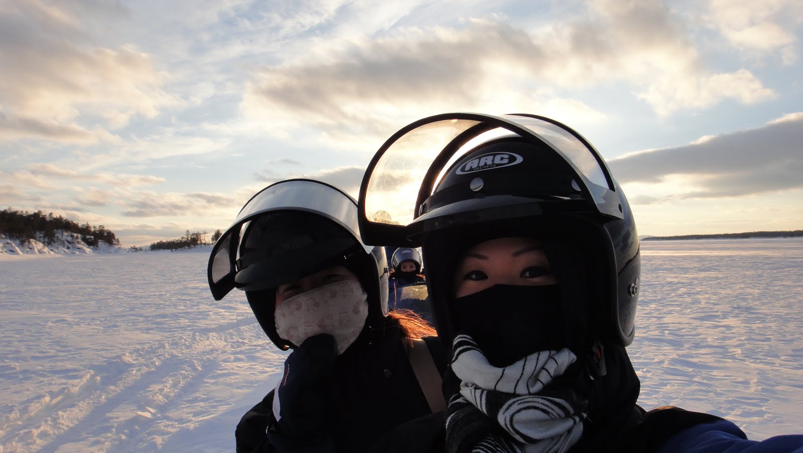 再來一張我們在Inari湖上的一景,這裡其實是一片湖泊,但我們卻在上面騎雪上摩托車。