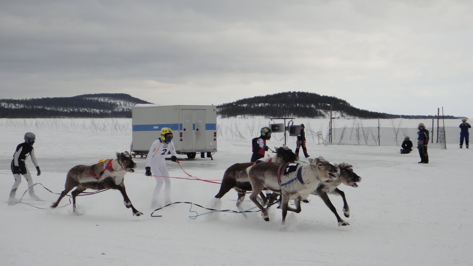 不過,在吃到一半時,旅館的一位帥哥跑來跟我們說,今天Inari有麋鹿比賽,我們可以騎雪上摩托車橫越Inari 湖到對岸參觀Inari 博物館,看看他們當地維京人以前是如何生活,還可以看麋鹿比賽,還有包吃到飽的中餐。