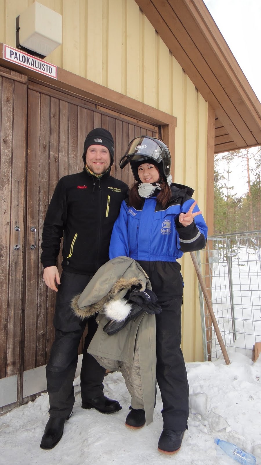 雪上摩托車!!??我的眼睛為之一亮!!我要!!!價錢90歐一個人,沒關係! 我要騎!而且是橫越結冰的Inari 湖,來回一共120公里。這麼刺激的事,當然要衝囉! GO~