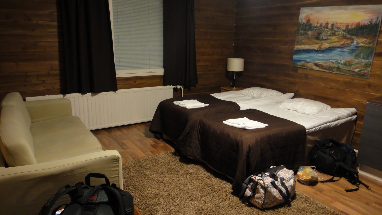 坐當地郵差的小巴後我們終於來到Nellimo,其實我們本來計畫要住在Inari,可是因為明天有麋鹿比賽旅館都訂完了,所以我們只好在Inari Lake的另一邊訂旅館,原以為跟Inari無緣,誰知,隔天我們有了更棒的冒險經驗~