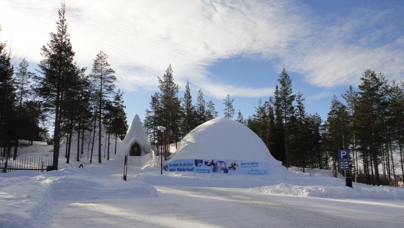 遠遠的看到一個冰屋,外面寫著溜冰場,但要額外付錢,所以想當然爾,我們只有拍拍照囉。