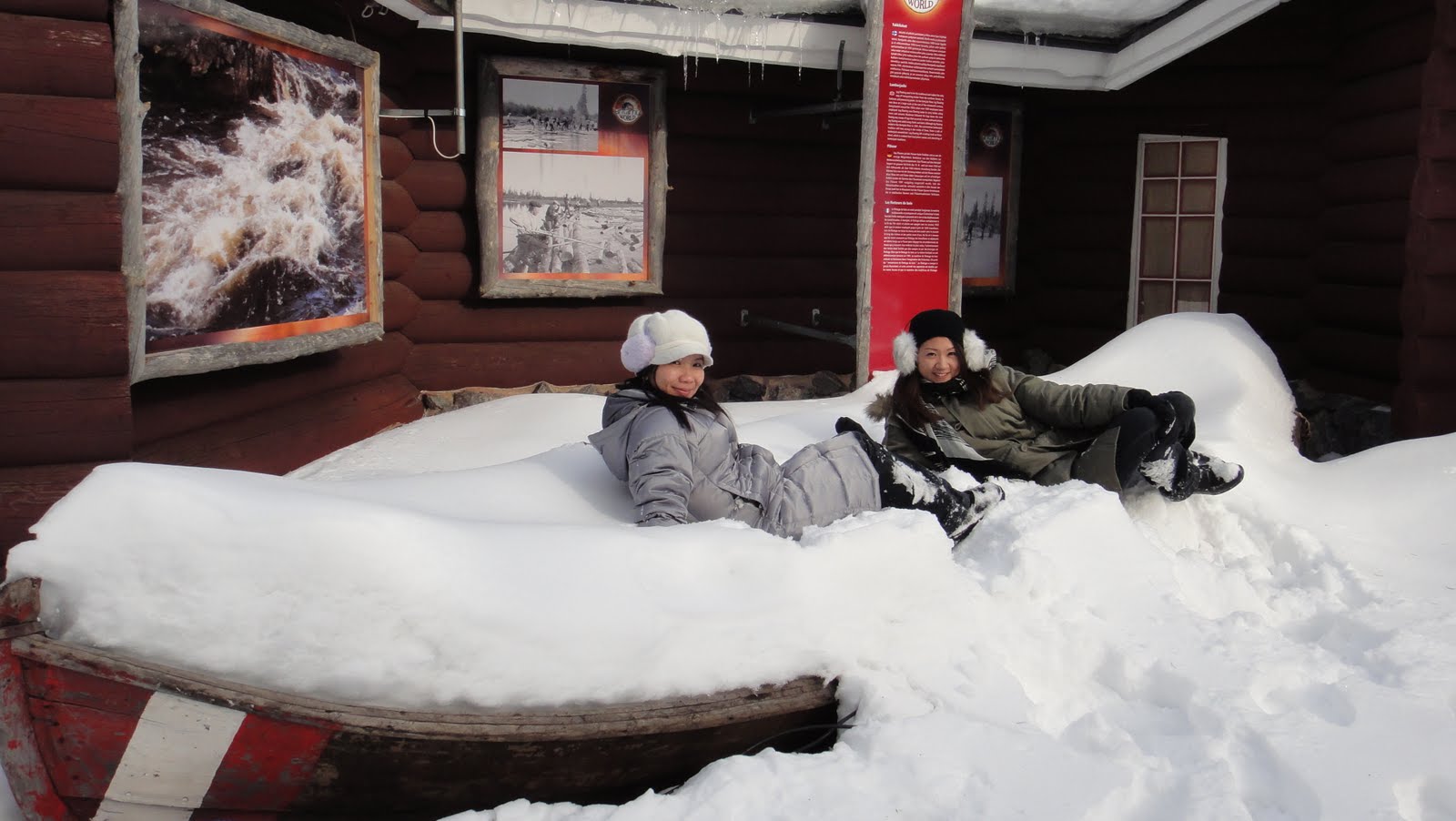 看道路邊一艘船已經裝滿了雪,我跟Claire兩個立即跳上去! 沒有陷下去耶,本來還妄想會陷在裡面。