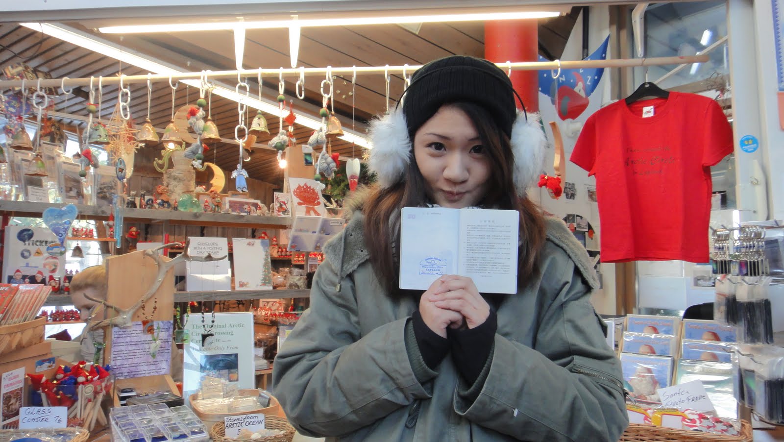 因為把護照放在大包包(真不知我那時在想甚麼,很危險@@),所以沒有在護照上蓋到北極圈的印章,只好借可愛的朋友Claire的護照來應景一下。~>0<~