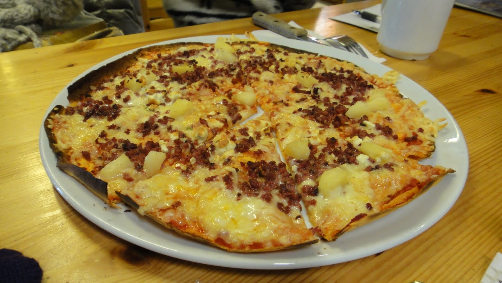 中餐吃的pizza,麋鹿披薩唷,上面的點點不是培根是麋鹿肉.....很好吃就是了,但超貴!要七歐耶!350塊台幣! 難怪說北歐的東西都很貴。