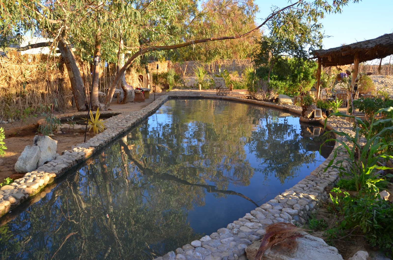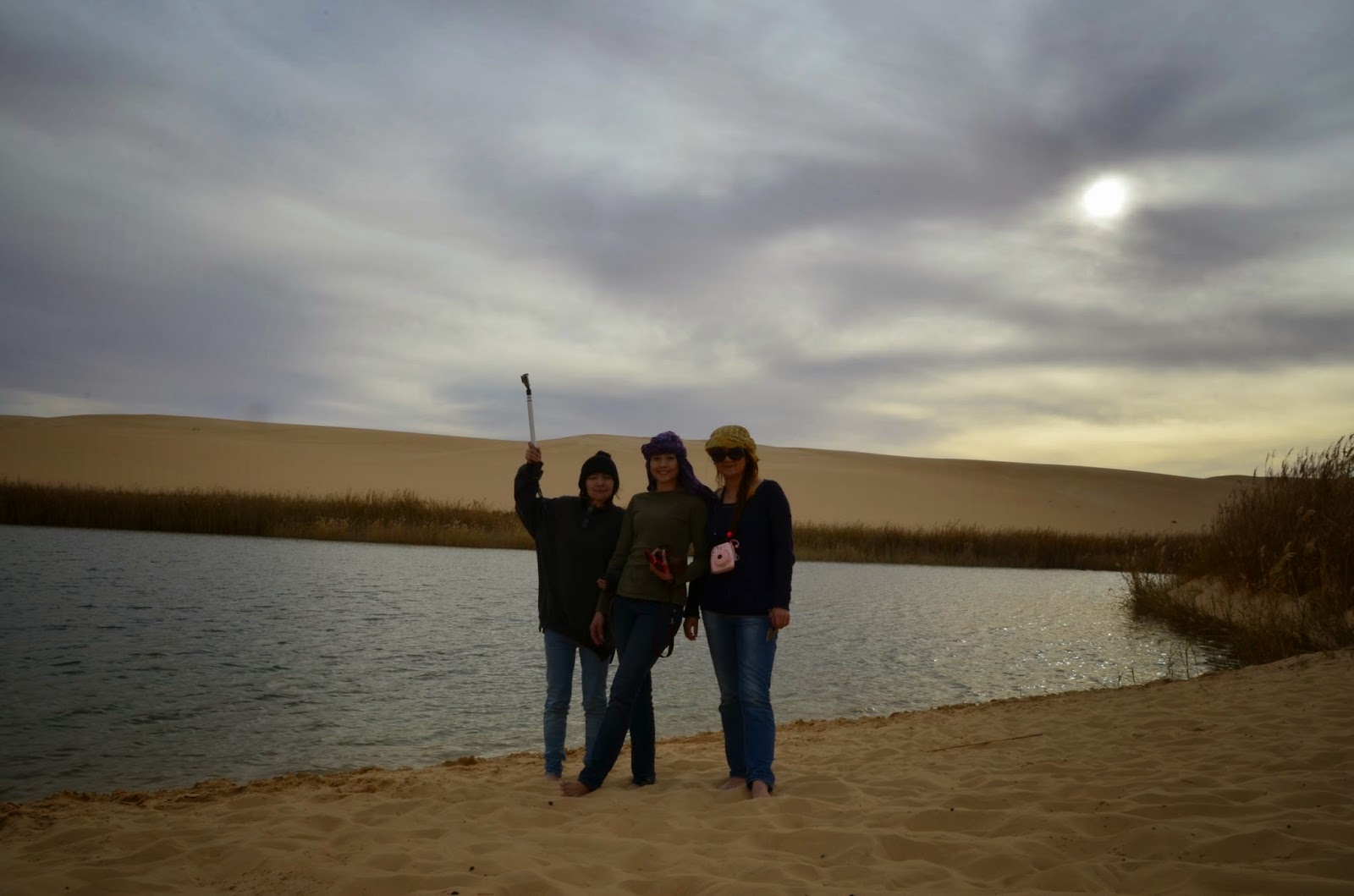 玩完沙板,眼睛幾乎已經被沙填滿後,去撒哈拉沙漠中的小湖乘涼一下。