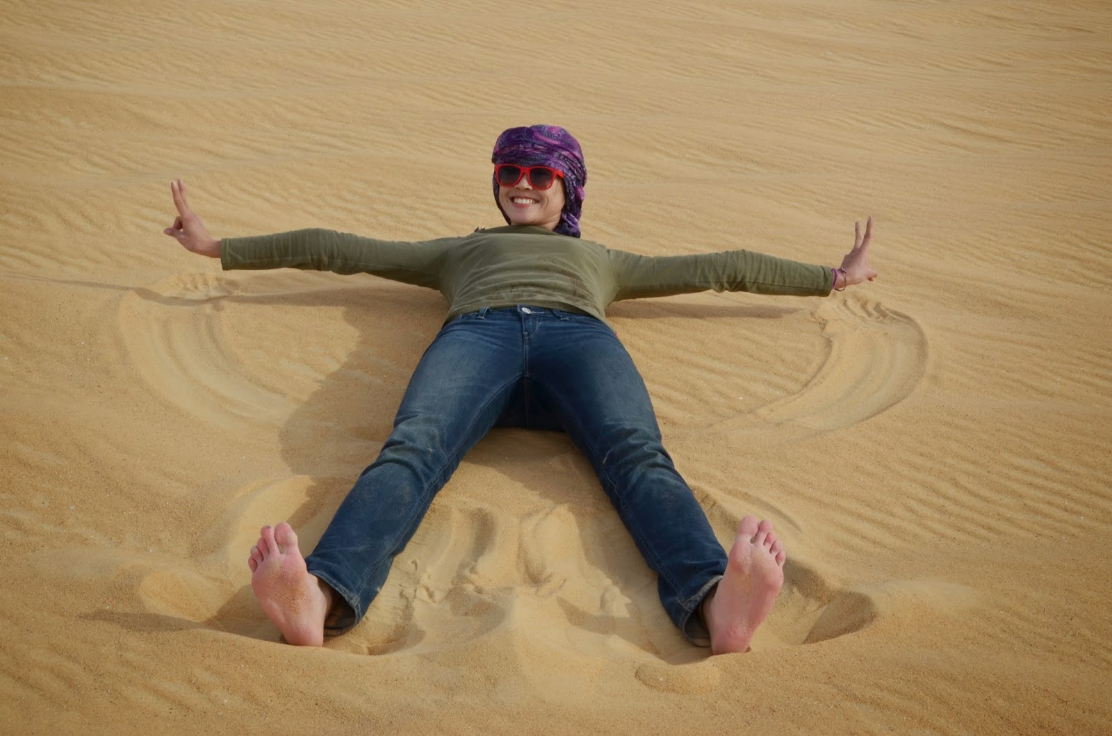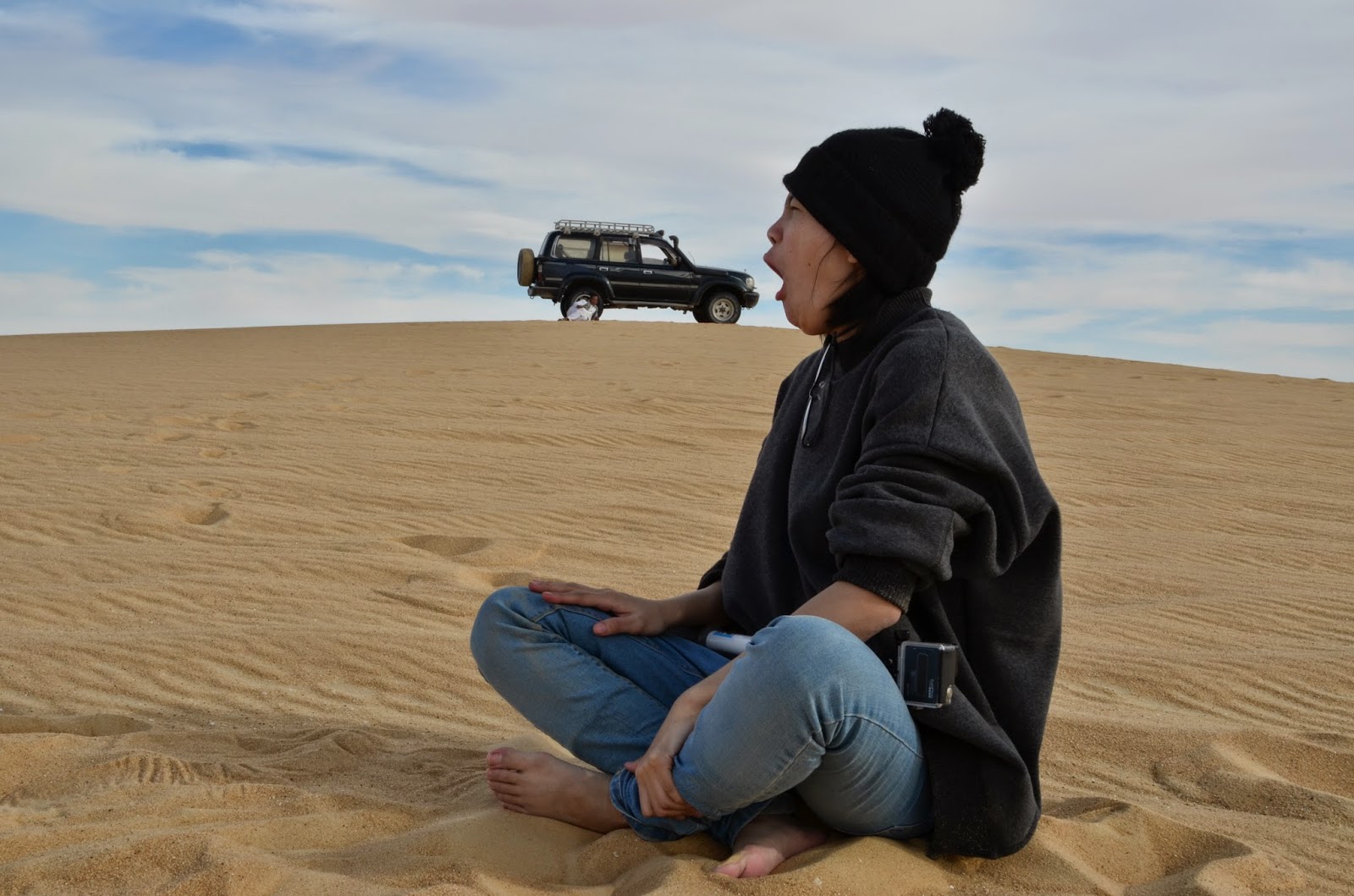 法替先生把吉普車停了下來後,我們就開始大玩沙。河童忍不住要仆街。