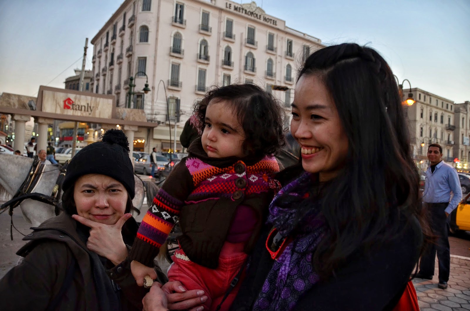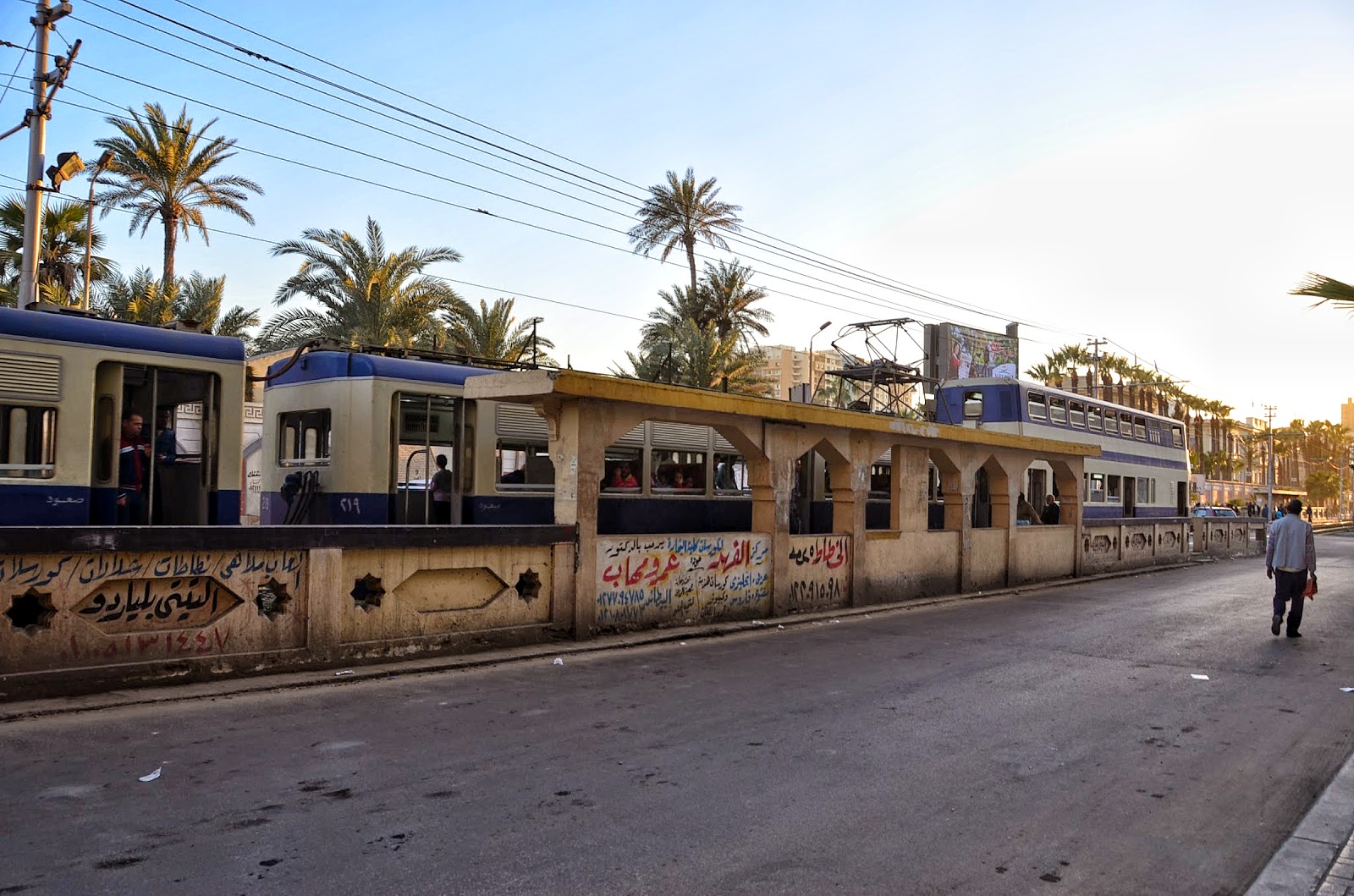 穿梭在亞歷山卓中的輕軌,不知道怎麼搭乘所以我們都用走的。因為身上現金不多,我們到處找可以換錢的地方,到了一個銀行問,已經到關門時間,就問那在哪裡可以換錢,沒想到整個銀行的人都跑出來跟我們說,幫我們想,最後在一位一旁提錢的路人甲的善意下,要我們跟他走,我們才終於能跟銀行人說再見,不然我們真的打算開簽名會了(誤!)