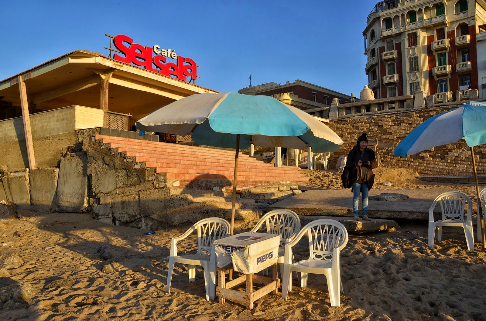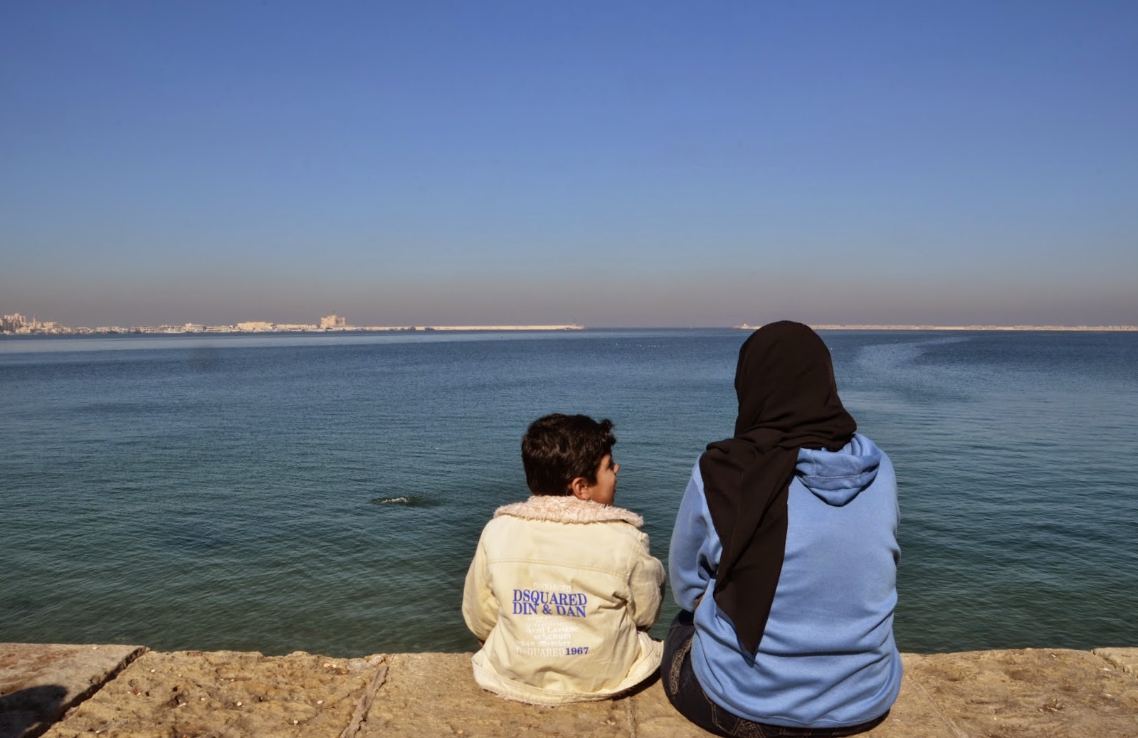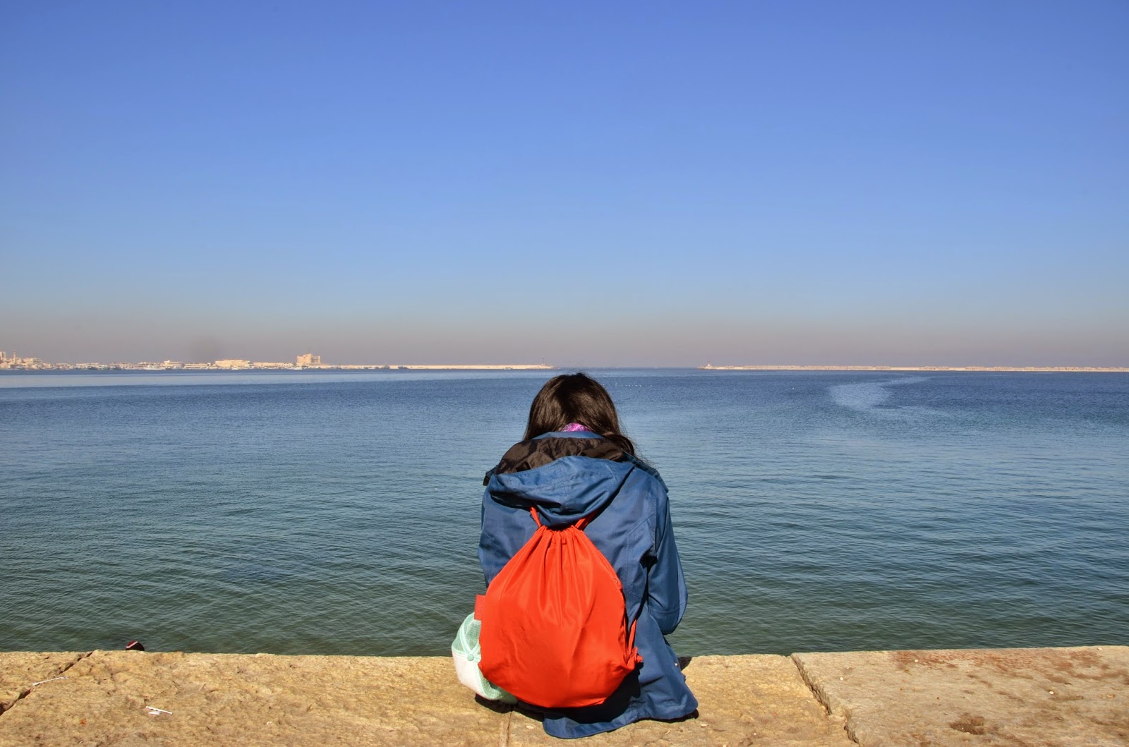 相信去過的人都知道開羅可怕的交通,雖說這是埃及第二大城,但沒有開羅的忙碌與擁擠。沿著地中海走,還會有很多媽媽爸爸帶著小孩在那坐著看海或是聊天。幾個好朋友也是坐在那嘰嘰喳喳的聊天,看到我們三個外國人,害羞(?)的咯咯笑。