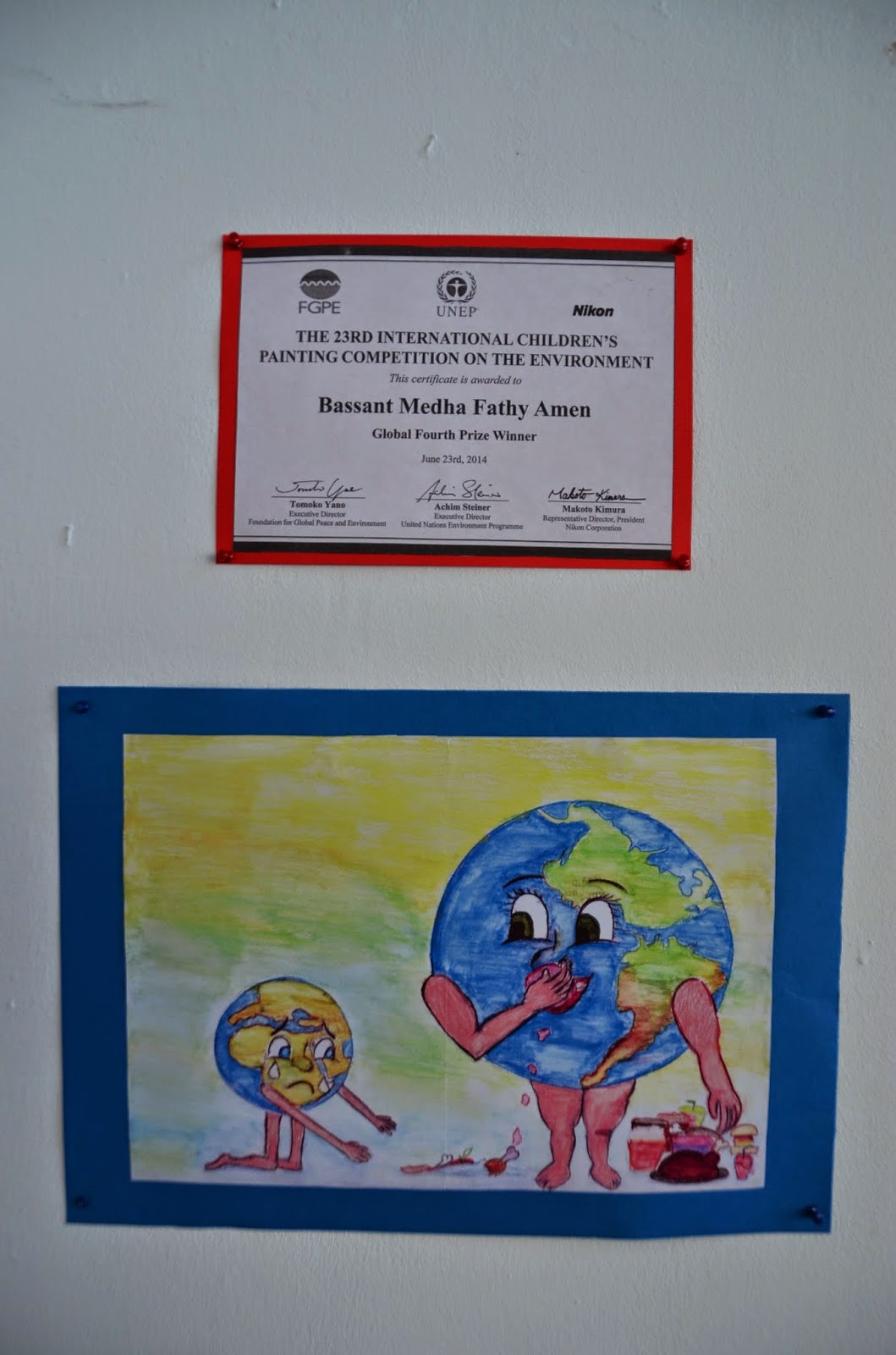 出來外面,看到亞歷山大的頭像,以及跟他頭像拍照的小朋友。(媽媽很愛用很大的螢幕拍照,呵呵)