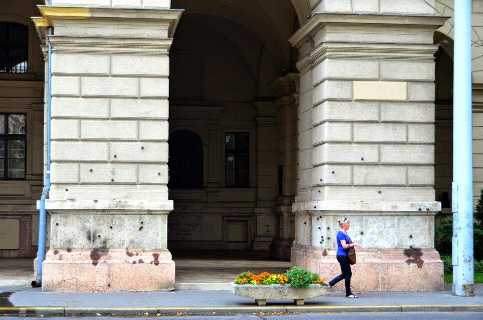 國會大廈對面的大樓上有ㄧ顆一顆的黑球鑲嵌在柱子上,其實那是第二次世界大戰時發射的大砲,如今還留著,為了讓人們不要遺忘戰爭的無情。