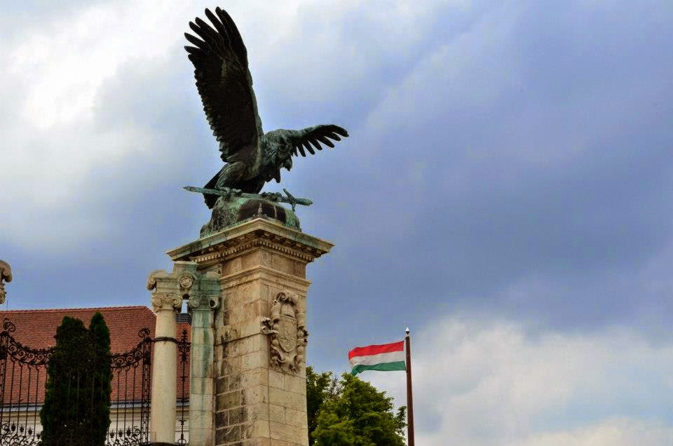 布達皇宮的老鷹與一旁的國旗。