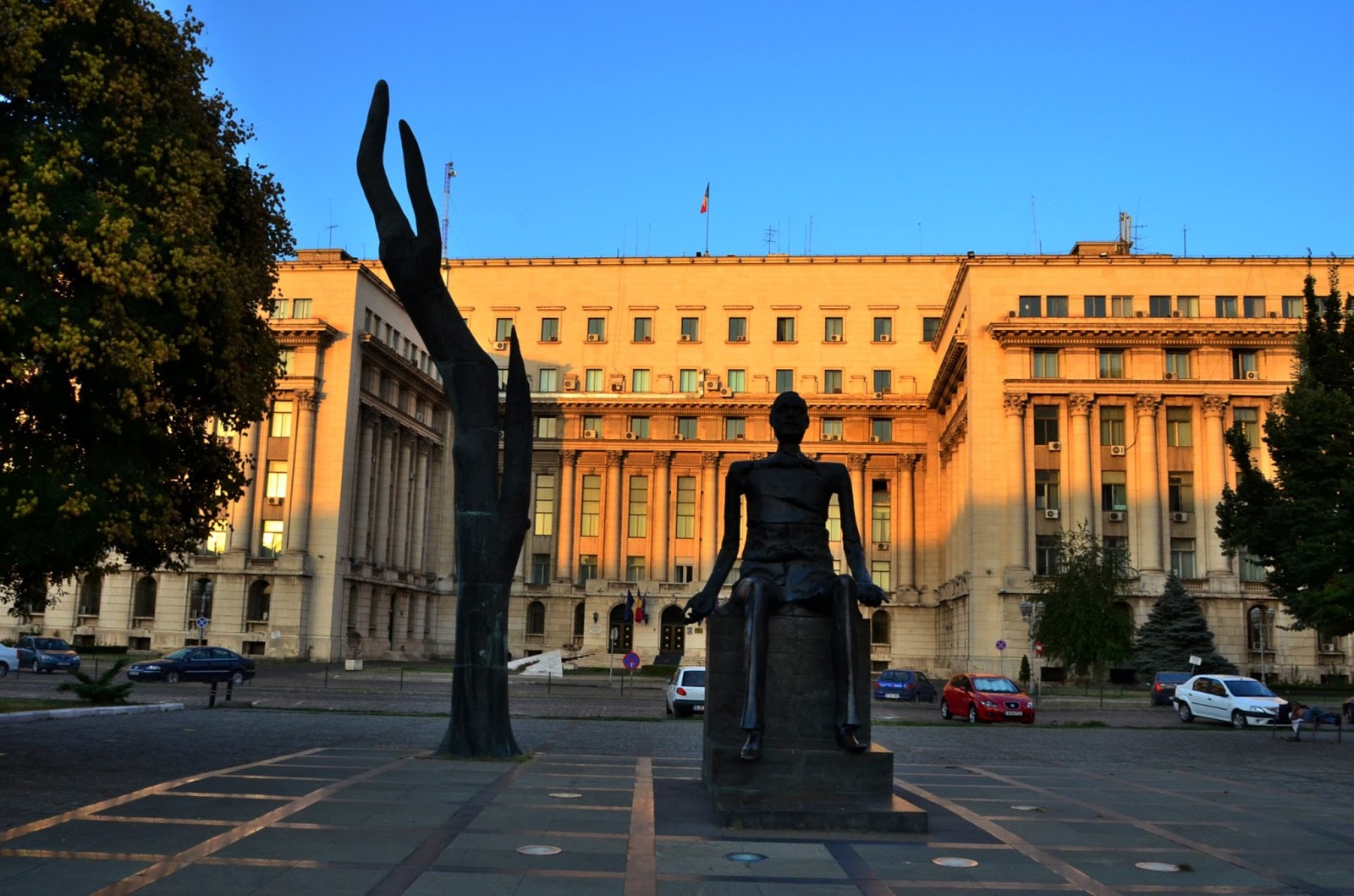 讓我印象最深刻的舊共產黨本部。當初宮產黨領袖壽西斯古就是在這棟建築物上發表了他最後的演講,最後揭著他的夫人搭乘直升機逃走。不過當初開直升機的飛行員也是支持革命的革命份子,於是把受西斯古夫婦丟在鄉村裡任其自生自滅,最後被農民認出,逮捕並送上死刑台。