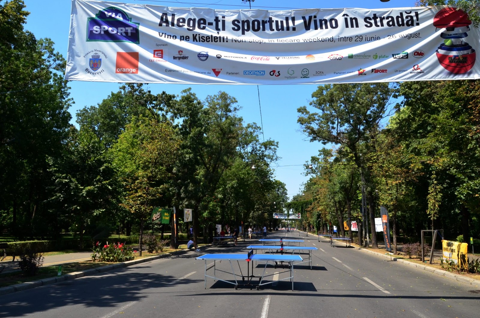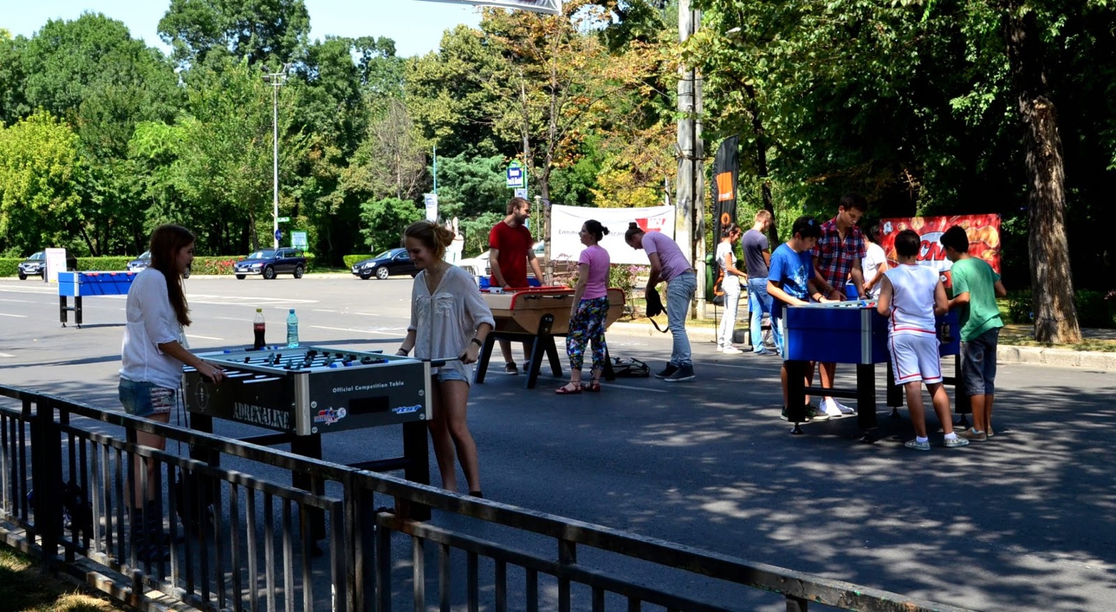 暑假到了,竟然馬路封起來給人運動,設有乒乓球桌、籃球框、桌上足球等等設施。好有健康意識。