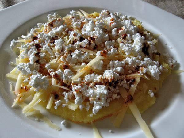 看似簡單的一道料理,是所有馬其頓人都喜愛的家常菜,厚厚的玉米粉團淋上熱蔬菜油、脆培根和羊奶起司,好好吃!