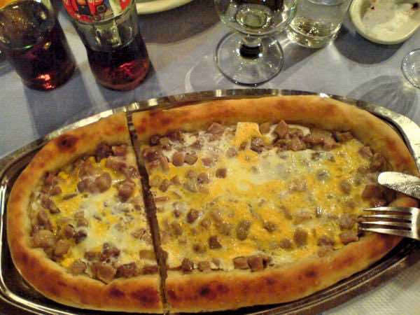 這是馬其頓式的Pizza,只是它是橢圓形的,內陷加上肉和蛋,最讓人可口的是淋上的酸辣甜椒醬Feferoni,馬其頓甚至有以這道菜為主的嘉年華呢!