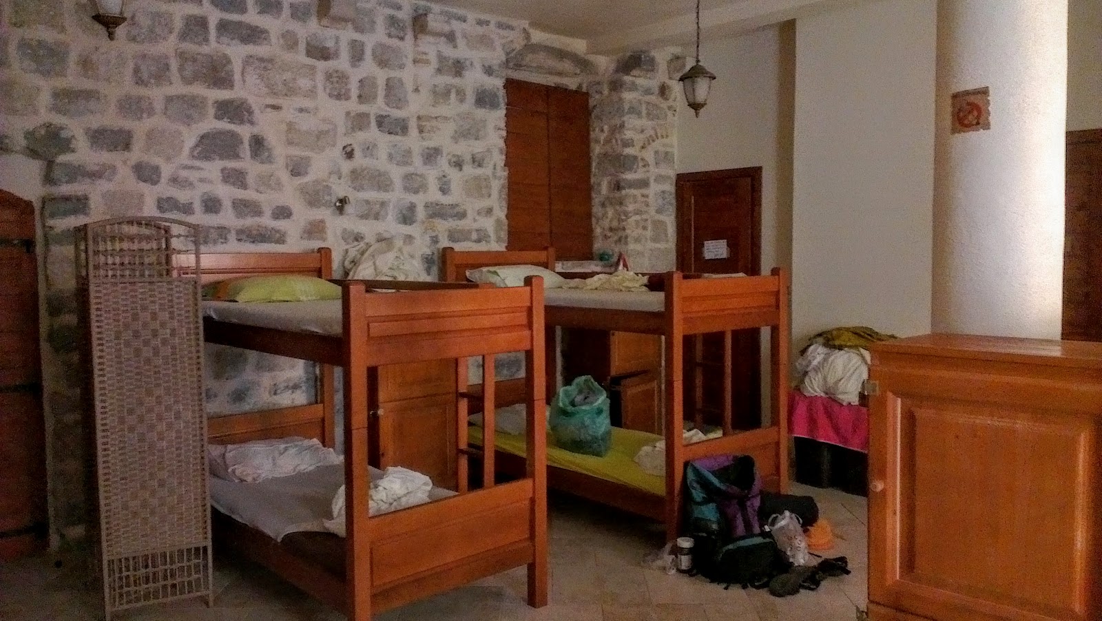 當初在Kotor我住的青旅名為Old Town Hostel,10人混合套房一晚11歐,雖然比一些青旅貴一點,但他的CP值還不錯,房間很大,就算10個人住滿也不會覺得擁擠,每個床位的隔距蠻大。推薦!重點是青旅的建築是一棟超過兩百年歷史的古屋,牆壁都是石牆,很特別。
