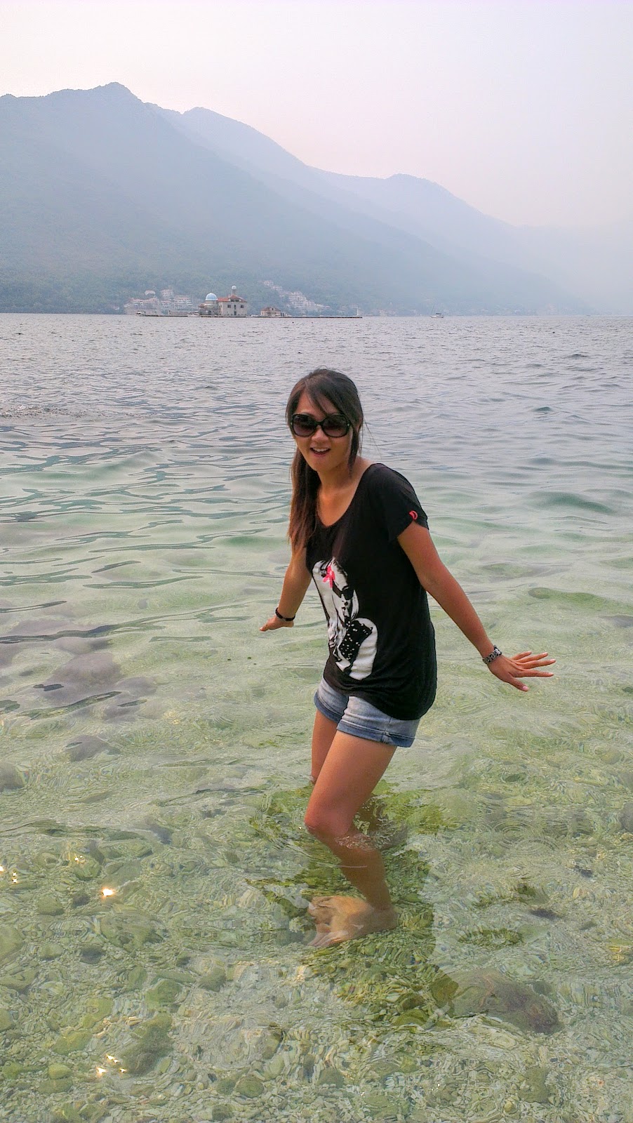 很開心在這裡認識了墨西哥女孩Nayeli,非常豪邁地在Perast海邊時脫下衣服褲子就往水裡跳,我因為害羞內衣褲太不堪入目,所以只有在岸邊拍她以及踩水(超想游泳的啦!),這個教訓告訴我,下次要穿好看一點的內衣褲去海邊,以防自己很想下水玩(或直接穿泳衣就好啦)。