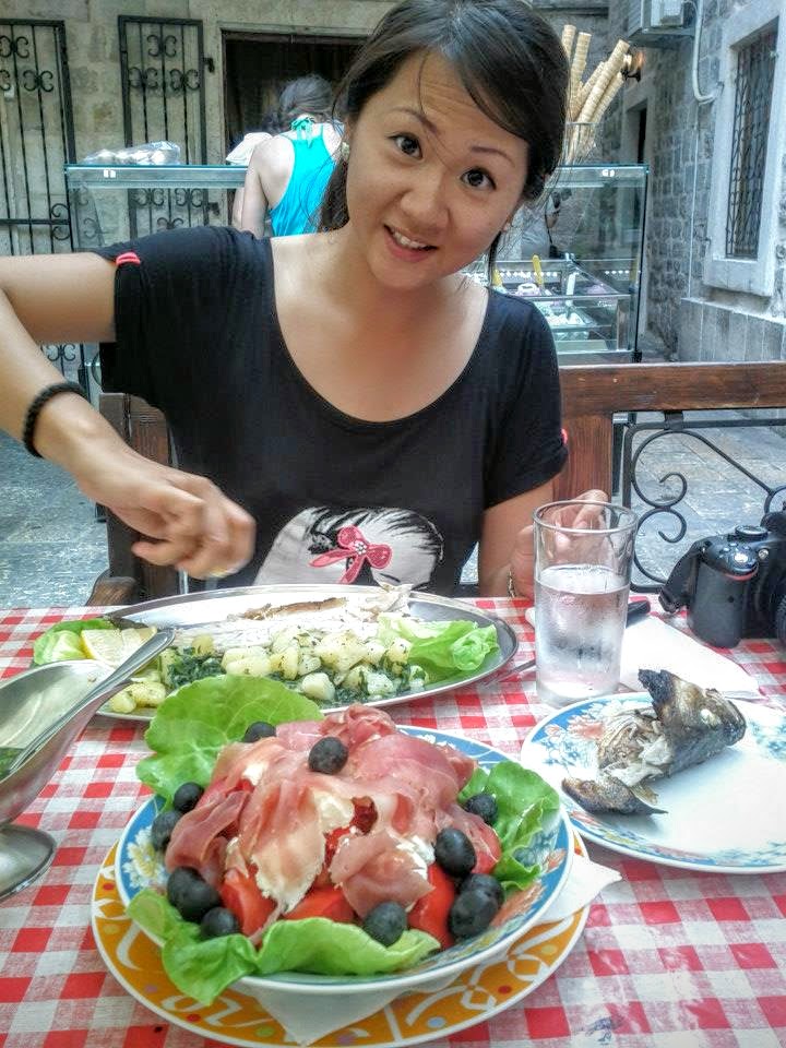 Kotor是個古城,尤以新鮮蔬果為傲,嚐過他們的番茄,又甜又多汁,而且很大顆,當時我要搭去Perast的巴士前,在城門旁的生鮮蔬果攤位買了幾顆蕃茄,想說在路上吃,還與我在等巴士時認識的墨西哥女孩Nayeli互相分享我們的蔬果(她給我一根香蕉,哈!),結果我們兩個一路上就一起走了(這是蔬果的緣分呀!)