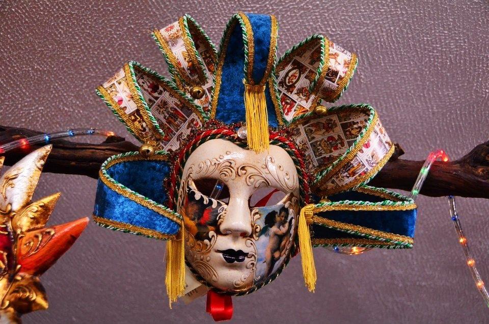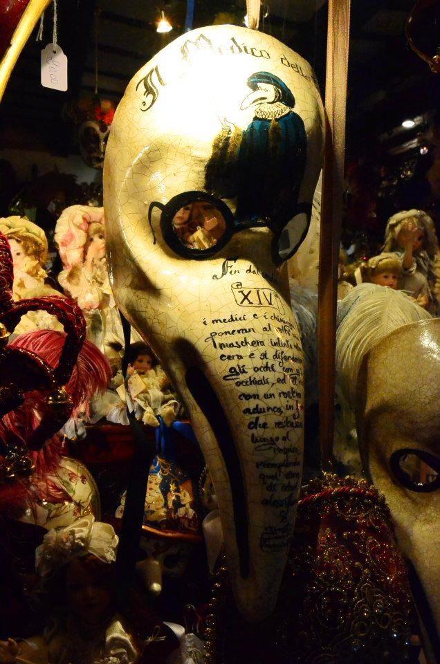 威尼斯最有名的當然就是多樣的面具,但這裡的面具有很多是中國製的,所以如果不想買到冒牌的建議是去商店裡面買,路邊賣的不會是義大利手工製的。價錢也有很多的差別,路邊的多為10歐起跳,商店裡面最簡單的約要20歐起跳,我花了30歐買了一個義大利手工繪製的面具,現在一直掛在我家的門上(晚上會嚇人)。