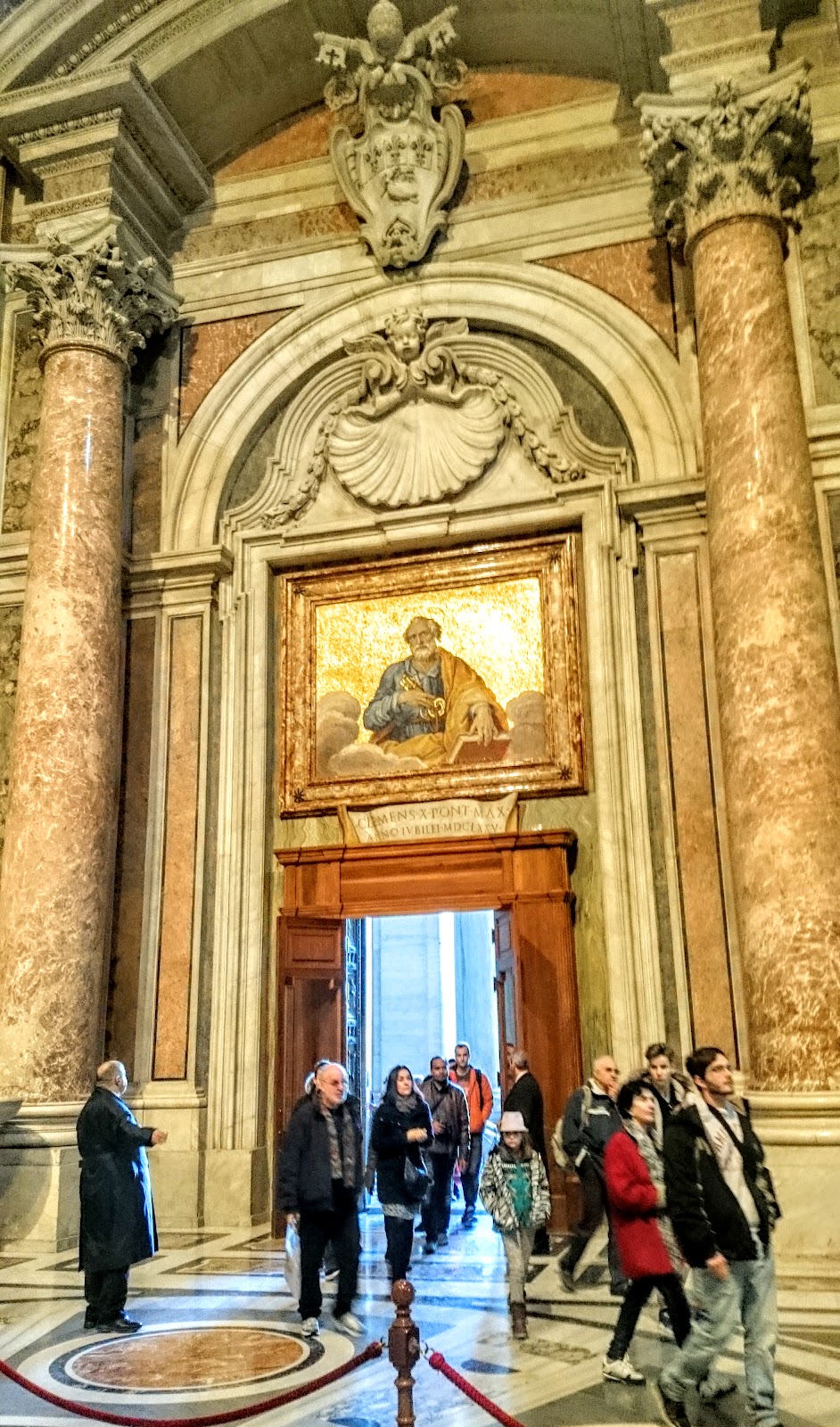 此傳統是在1300年,由教宗Boniface八世開啟的,並一直延續至今。我排隊排了非常久(將近2個小時)才得以穿越這道門進去聖保祿大殿。其實這次出遊,有發現到義大利的戒備更嚴僅了,也許是因為受到恐怖份子的威脅,所以進去每個教堂,幾乎都要經過很嚴森的檢查。