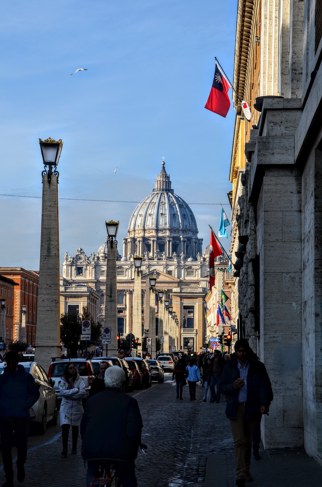 當我走在梵蒂岡大道上時,看到台灣的國旗在一棟建築上飄揚,心中真的很開心。我想在國外待過的台灣人,應該都有感受過那種,似國非國,被當成中國人的經驗,那真的很不舒服。所以這次在梵蒂岡看到我們的大使館,我不禁停下腳步,看著我們的國旗許久(也拍掉很多張照片),與我一起走的印尼女孩Dona還問我為什麼看到我們的國旗會這麼興奮,將歷史經過告訴她,以及常常受到的委屈,她聽得只覺得政治真的很荒謬。(哎哎哎)