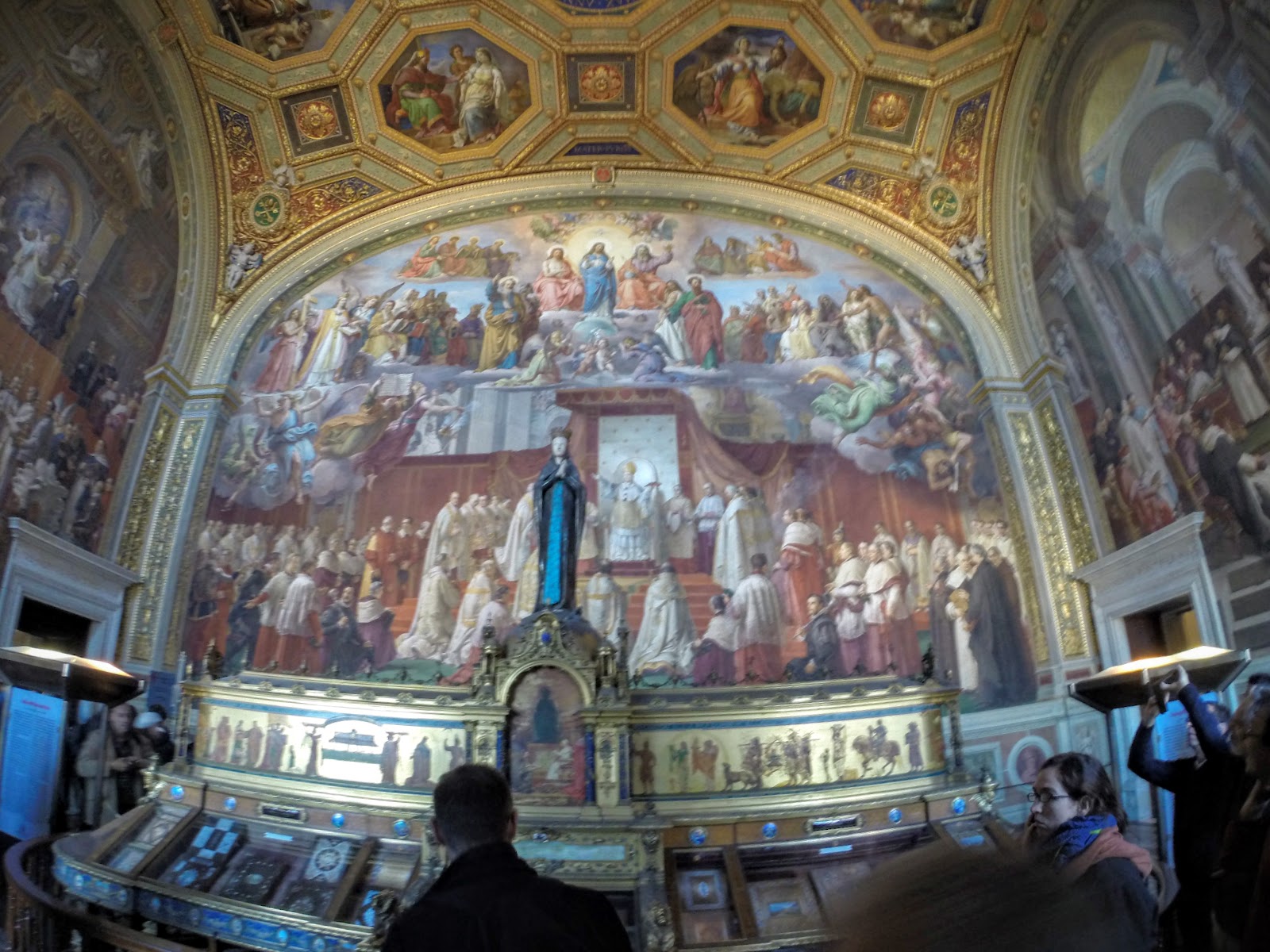 有機會來到梵蒂岡博物館,絕不可錯過的這禮拜堂,可惜的是這裡禁止拍照,雖然看到有人偷偷的在拍,但不想當沒品的人,所以只好仰頭好好欣賞,把畫留在腦海。