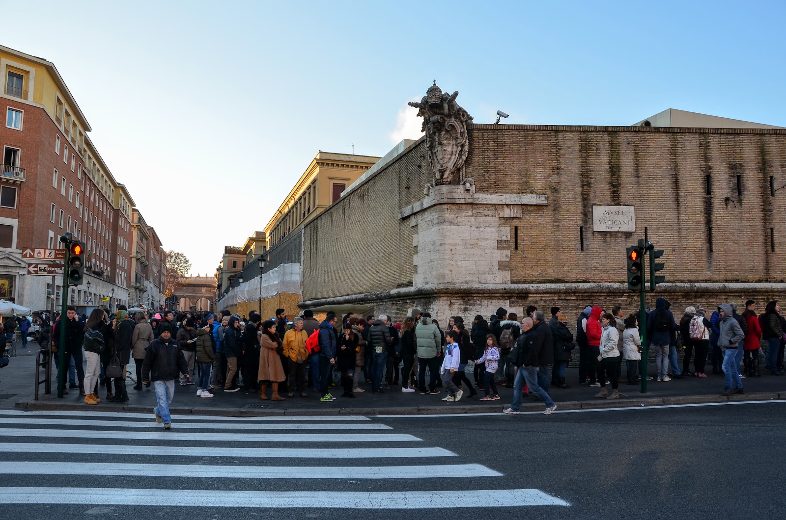 12月27日那天,梵蒂岡博物館免費開放,所以我與新認識的德國女孩Hannah相約一起去逛,吃完早餐後,看到已經排到快500公尺以外的,我還在想新策略要怎麼安排今天的路線,德國女孩就拉著我走到很前面,然後,就這樣融入到隊伍了(不是我要插隊的!哈!)。