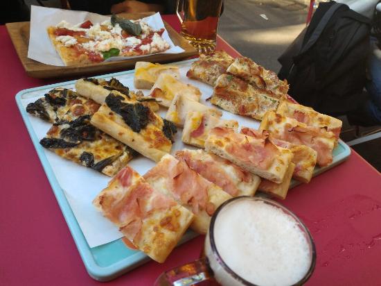 在這裡吃批薩,一律以秤重為價,但非常便宜好吃,我花了3歐就解決了一頓餐,而且配料與醬料都非常棒,廚師們都很風趣,會一直跟我們開玩笑。