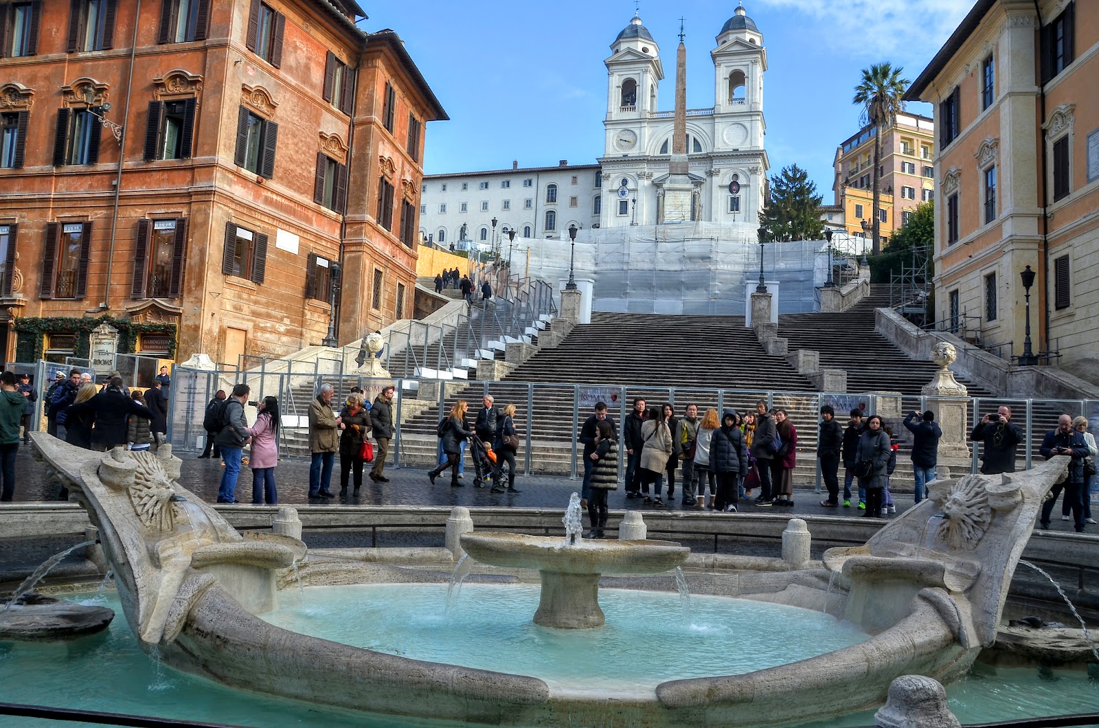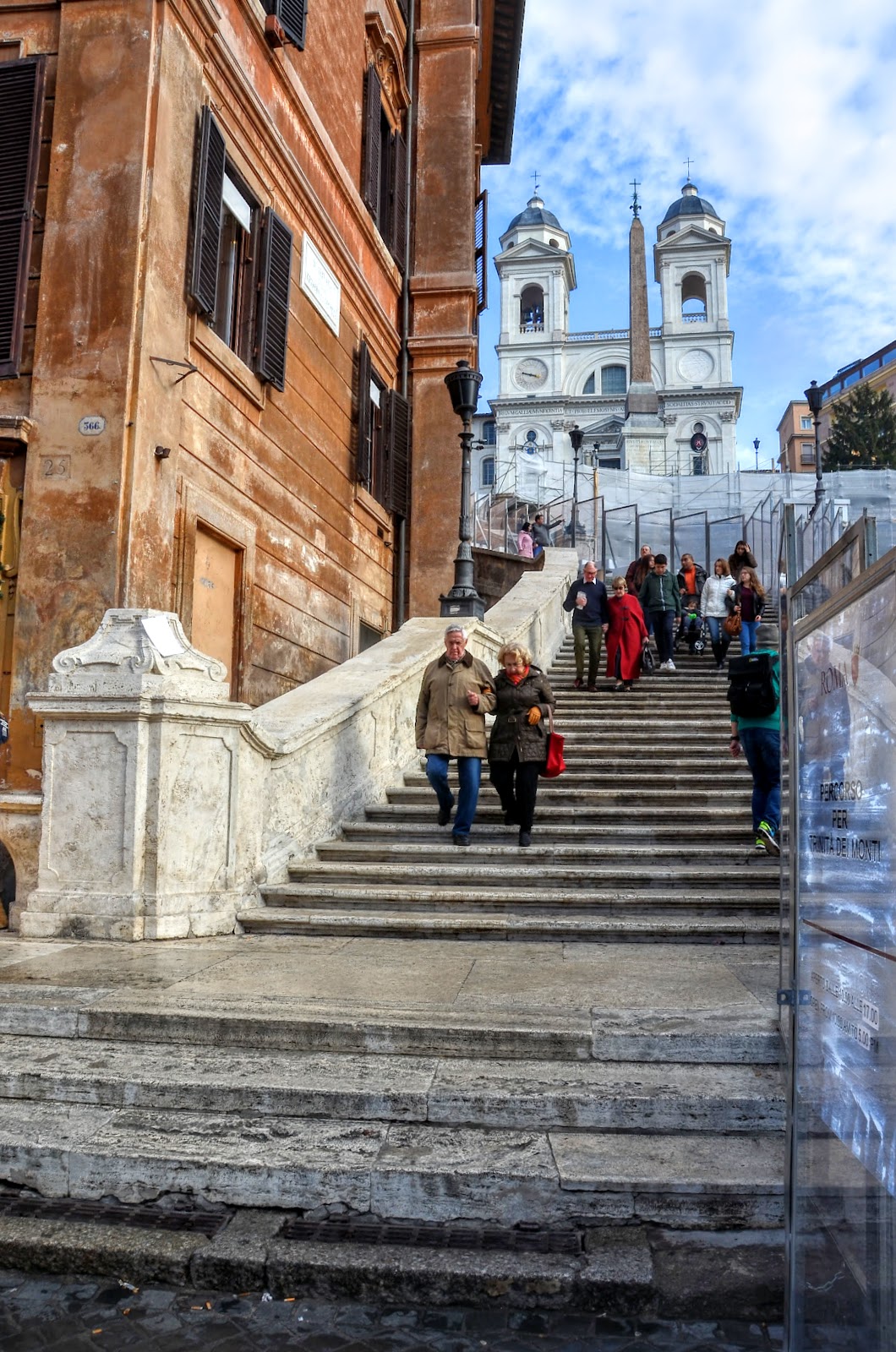 可惜的是我在的時候,西班牙階梯在整修,所以階梯上的教堂被遮住一大半,期望下次再去羅馬可以看到它完成整修的樣子。
