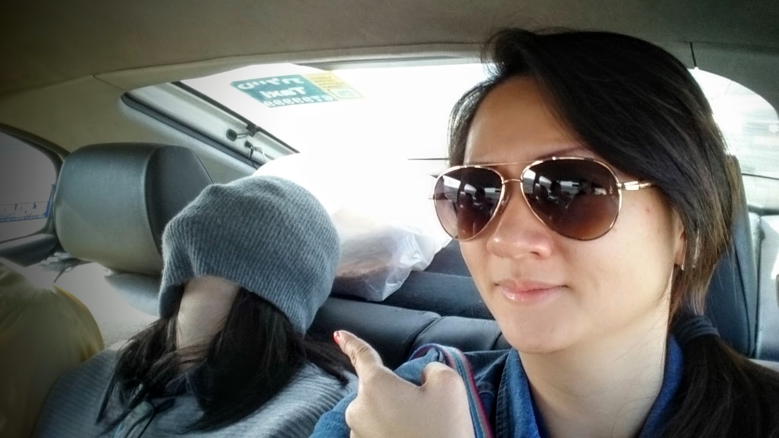出發的車上,因為很早起,所以河童小姐很快的就進入夢鄉。只是睡覺,有需要向要去搶銀行一樣嗎?哈哈哈!!!