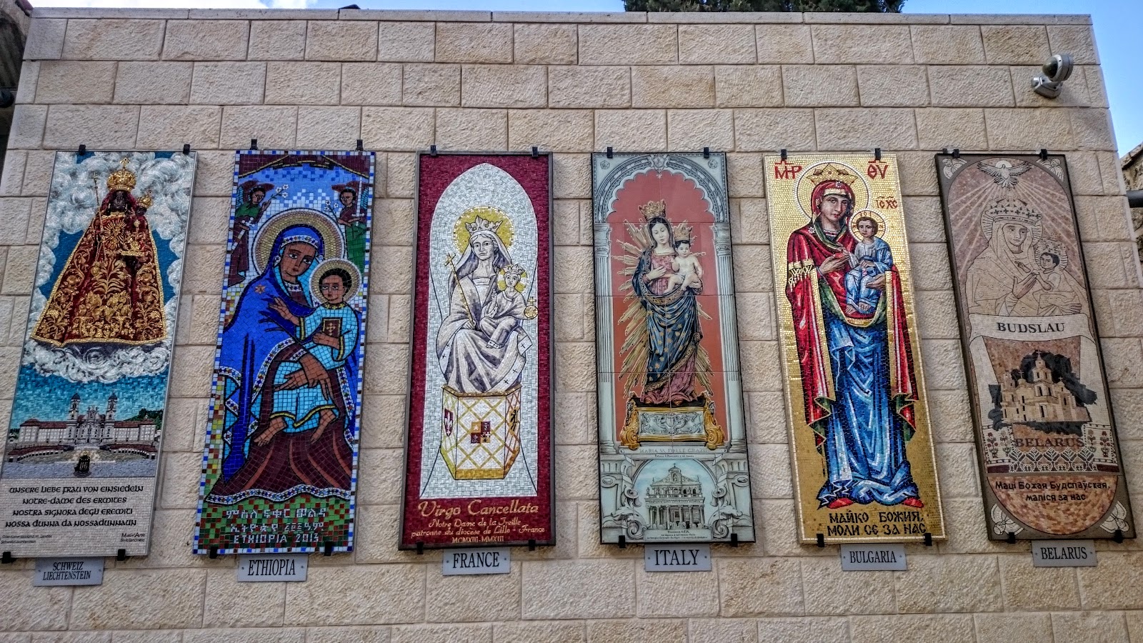 教堂裡面有許多其他國家捐贈的聖母瑪莉亞與嬰兒耶穌的畫像。