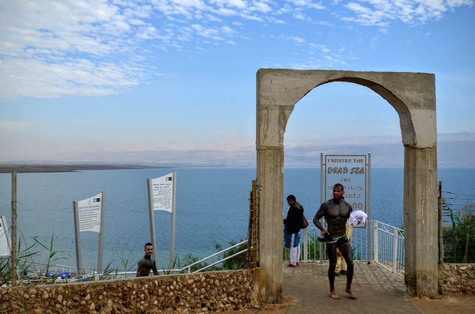 來死海一定要把身體塗一層厚厚的黑泥,死海黑泥有養顏美容的效果,好多阿桑阿嫂的來這裡狂塗死海泥在誰上,所以難得看到肌肉男,一定要來偷拍一下啦。