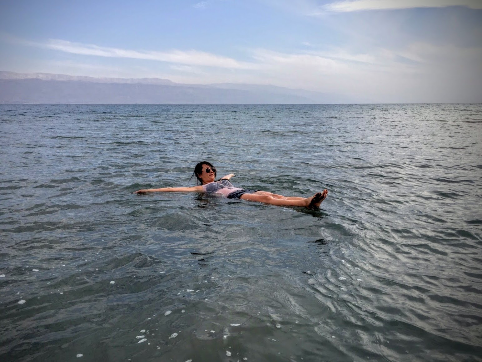 沒想到自己有這個機會徜徉在海平面下426公尺的死海裡。其實說是海,其實它只是一個廣大的湖。因為太低,所以鹹度過高,身上如果有任何傷口碰到死海水會真的很痛!死海也是世界上唯一沒有任何生物生存的水體。