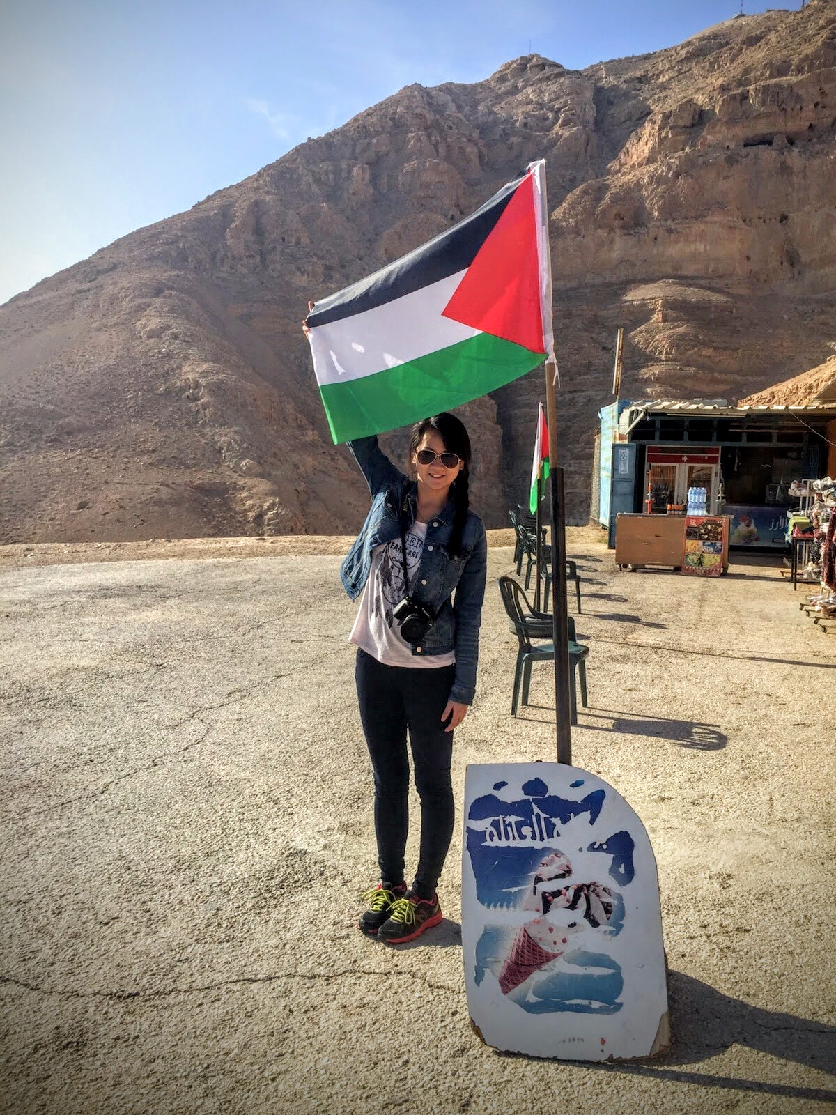 在巴勒斯坦,一定要跟巴勒斯坦旗子拍一張。