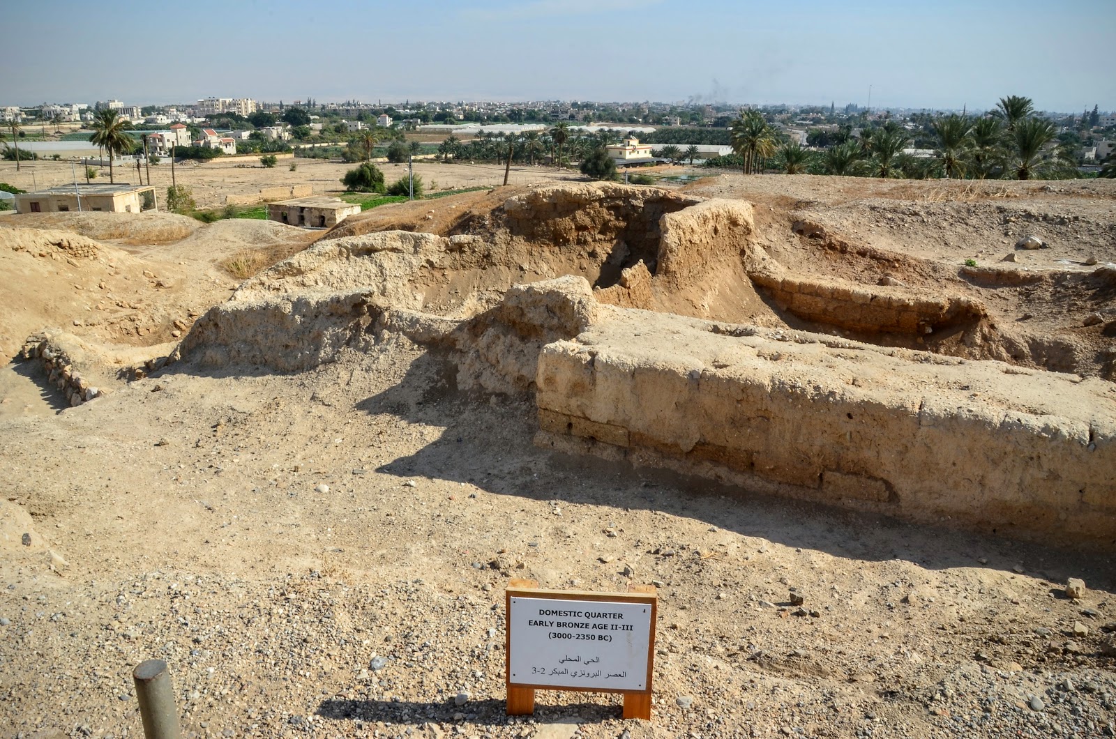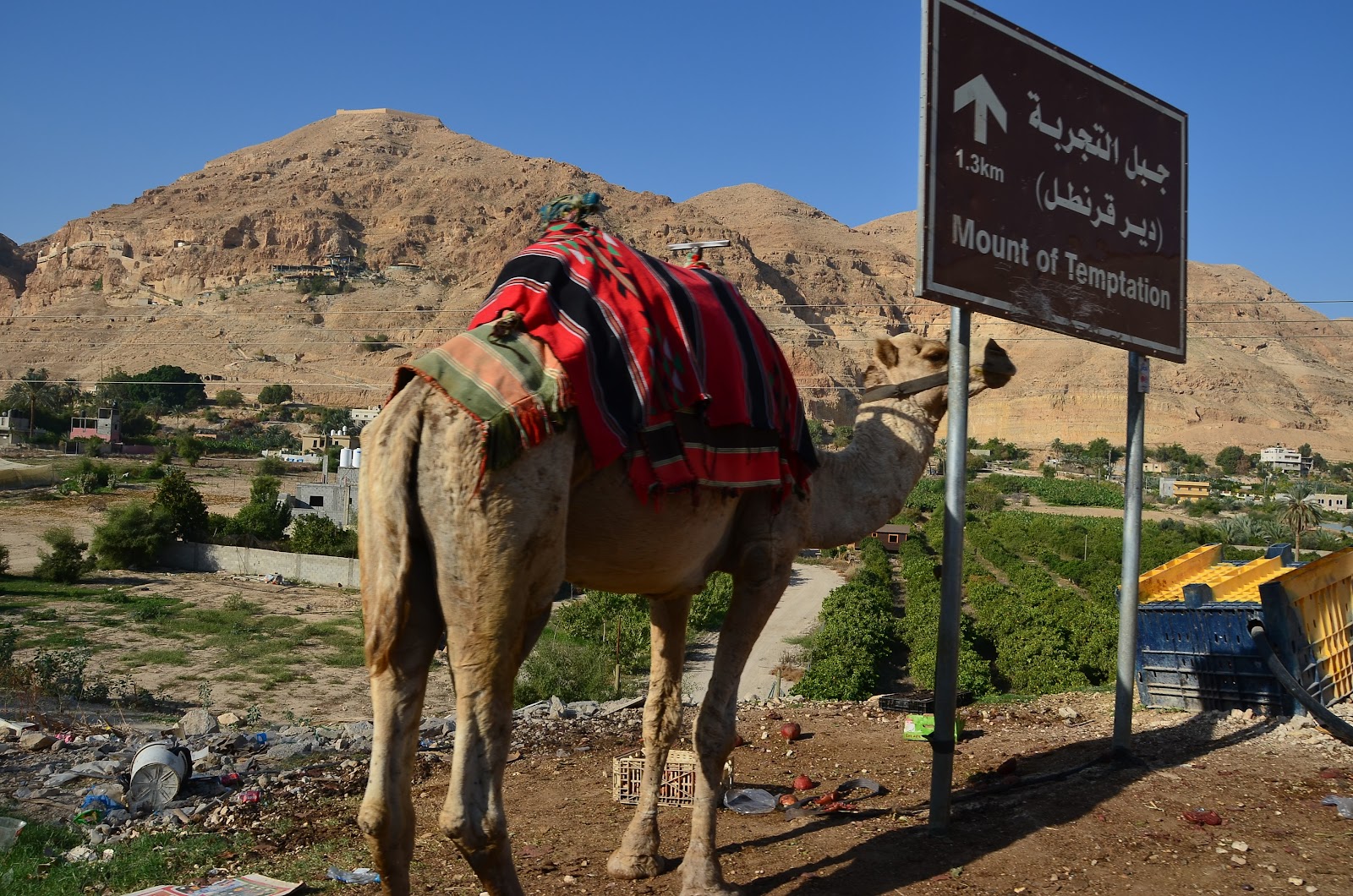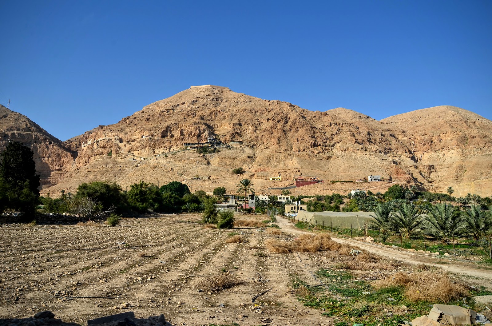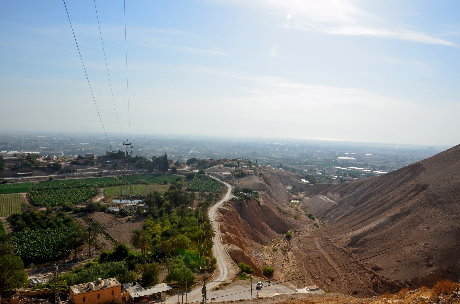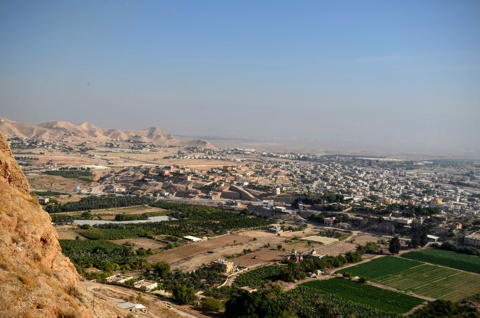 第一站,我們首先是到Jelicho,這個城市非常古老,考古學家認為它在西元前2000年就存在了,具有四千年的歷史。在舊約中,天主幫助若蘇厄攻下耶里哥,也要他把耶里哥城中的一切完全毀滅,只有妓女拉哈布和她的家人可以生存,因為這個妓女隱藏了若蘇厄所派的使者。我們從舊約中也知道這個拉哈布就是耶穌的曾曾曾曾.....祖母。到底這個耶里哥是不是聖經中提到那個耶里哥不是百分之百確定。聖經裡提到的耶里哥是因地震而滅亡的,但考古學家認為當天我們參觀的耶里哥是因為大火而滅亡的。