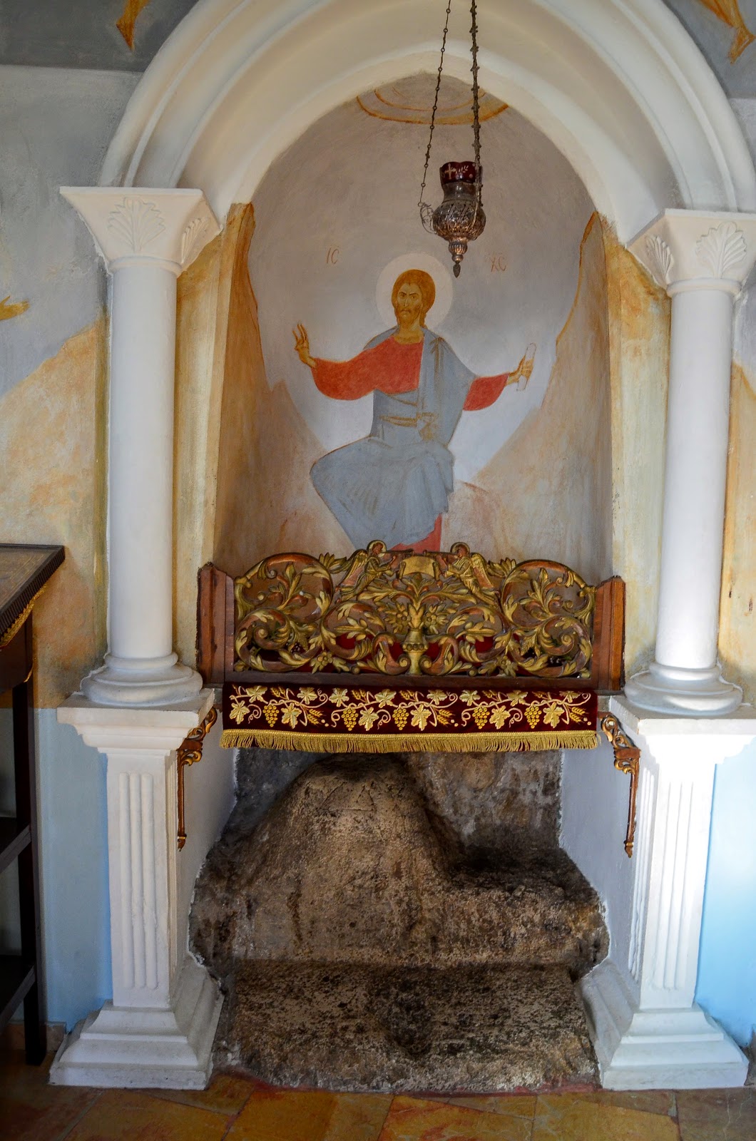 再往修道院裡面走去,一群德國人在裡面禱告,等他們離開後,我們才得以進去當初耶穌冥想的地方。