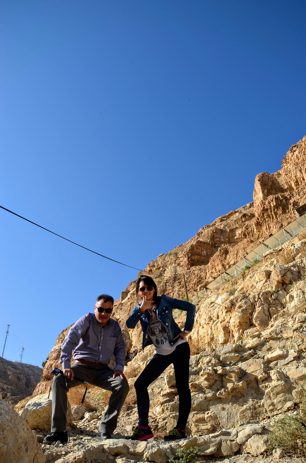 快速沖了個澡後,司機大哥帶我們到最後一站,Masada,從死海的前頭(我們玩水的地方)到死海的南端。