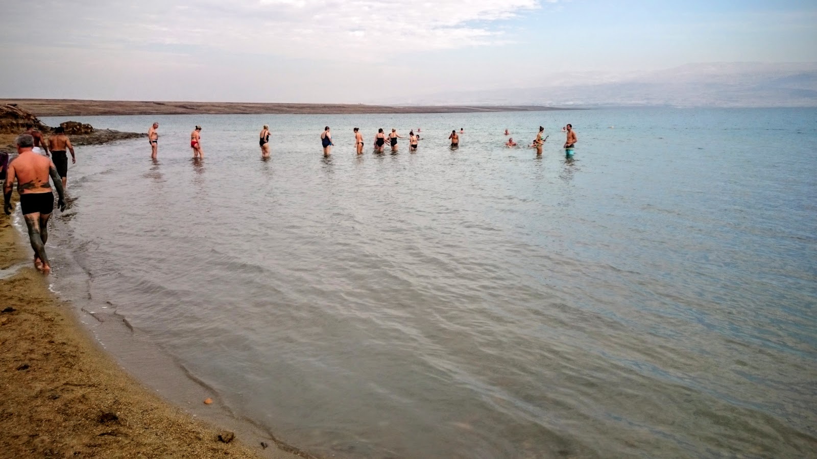 瞬間有一個錯覺以為我來到印度恆河了,因為幾乎都是印度阿桑阿嫂的。大家不斷的東塗塗西塗塗,還拿塑膠袋來裝死海泥。(真是太妙了!早知道我也這麼做,還跑去買,哈!)