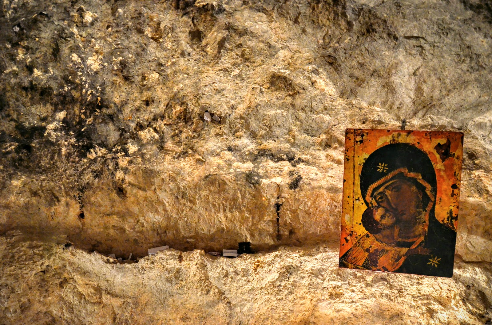 這個洞穴裡有很多小紙條,其中一位修道士跟我們說人們會把他們的祈禱寫在紙上並放在洞穴裡任何一個小縫隙,希望受到天主的保佑,完成他們的願望。