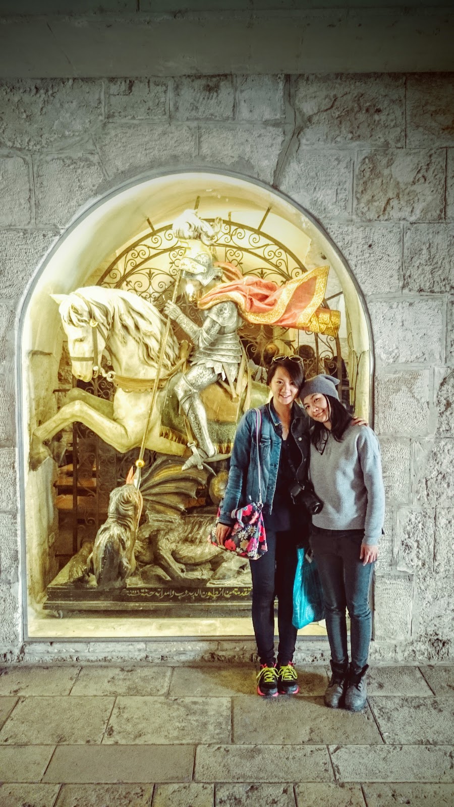在聖喬治亞殺龍雕像旁。