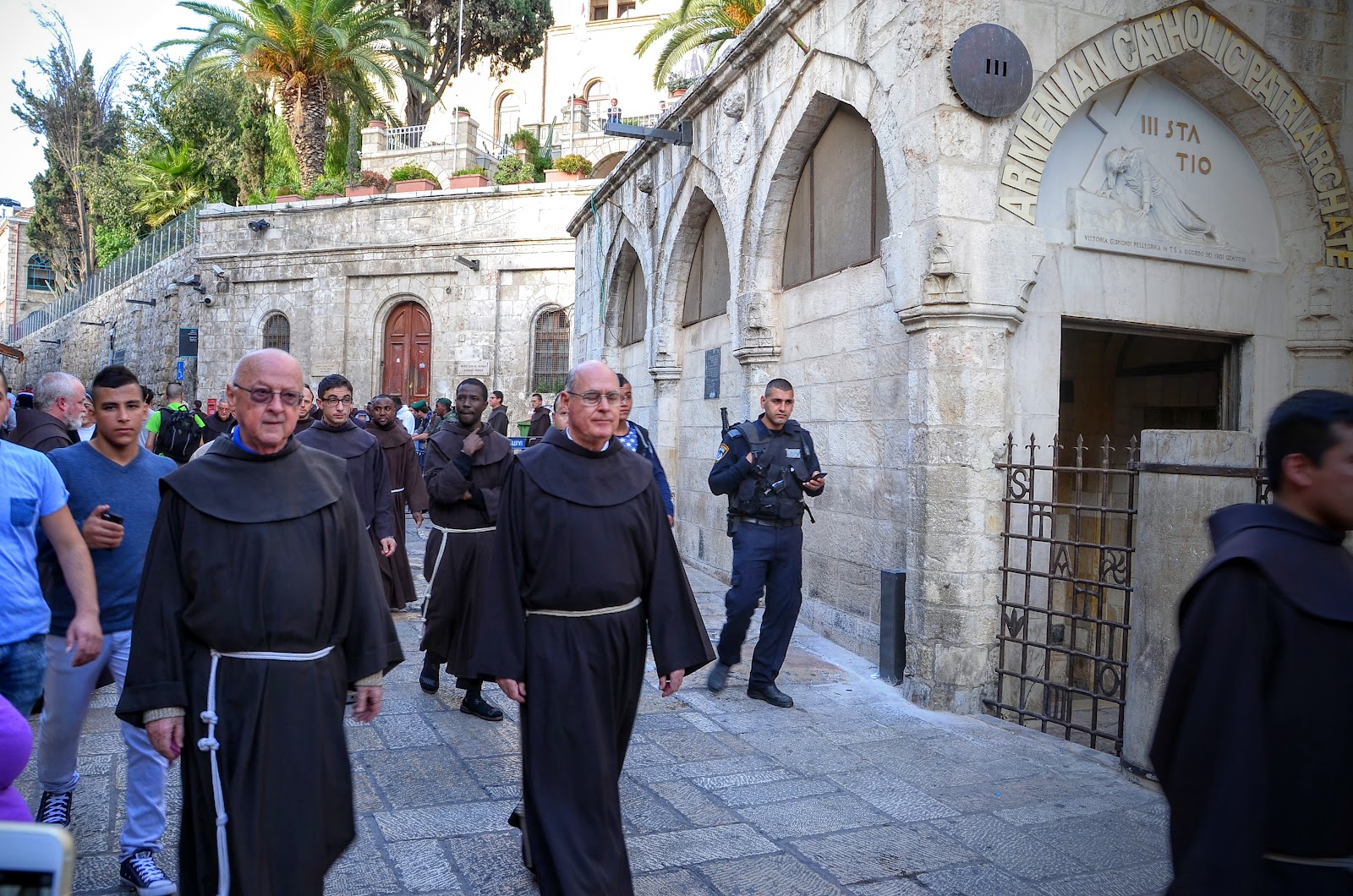 很幸運的是因為是禮拜五,三點開始會有牧師、傳道士沿著當初耶穌被定罪時要走的14個點。Via Dolorosa就是當初耶穌走向被釘在十字架上走的那條路。